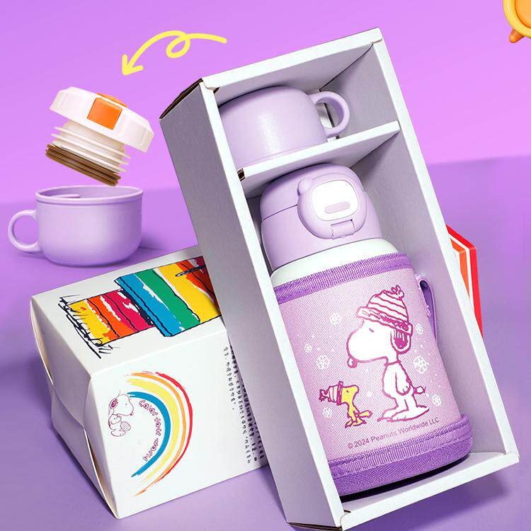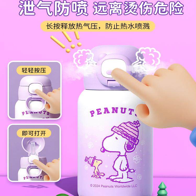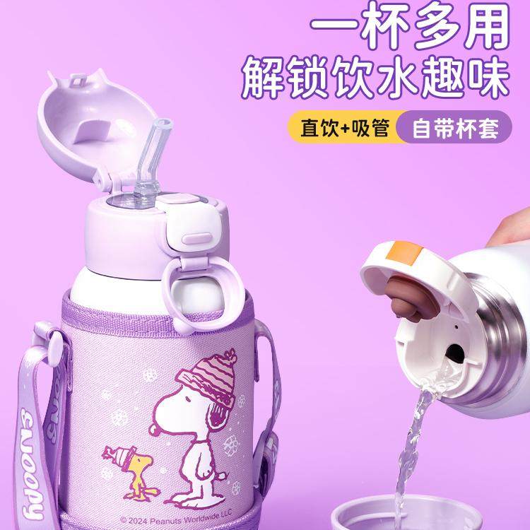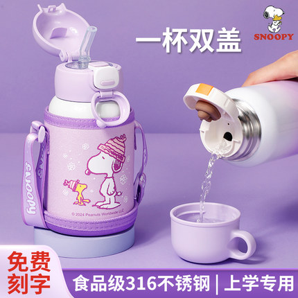 史努比儿童保温杯女孩幼儿园316不锈钢吸管水杯上学专用便携水壶