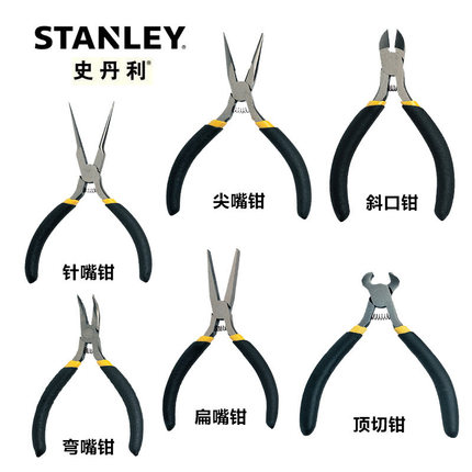 史丹利黑柄迷你尖嘴钳斜口钳针嘴钳顶切钳弯嘴钳扁嘴钳84-096