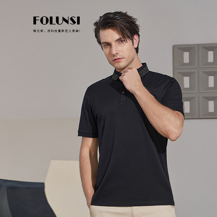 【桑蚕丝】佛伦斯folunsi男装春夏T恤短袖黑色商务休闲polo衫半袖