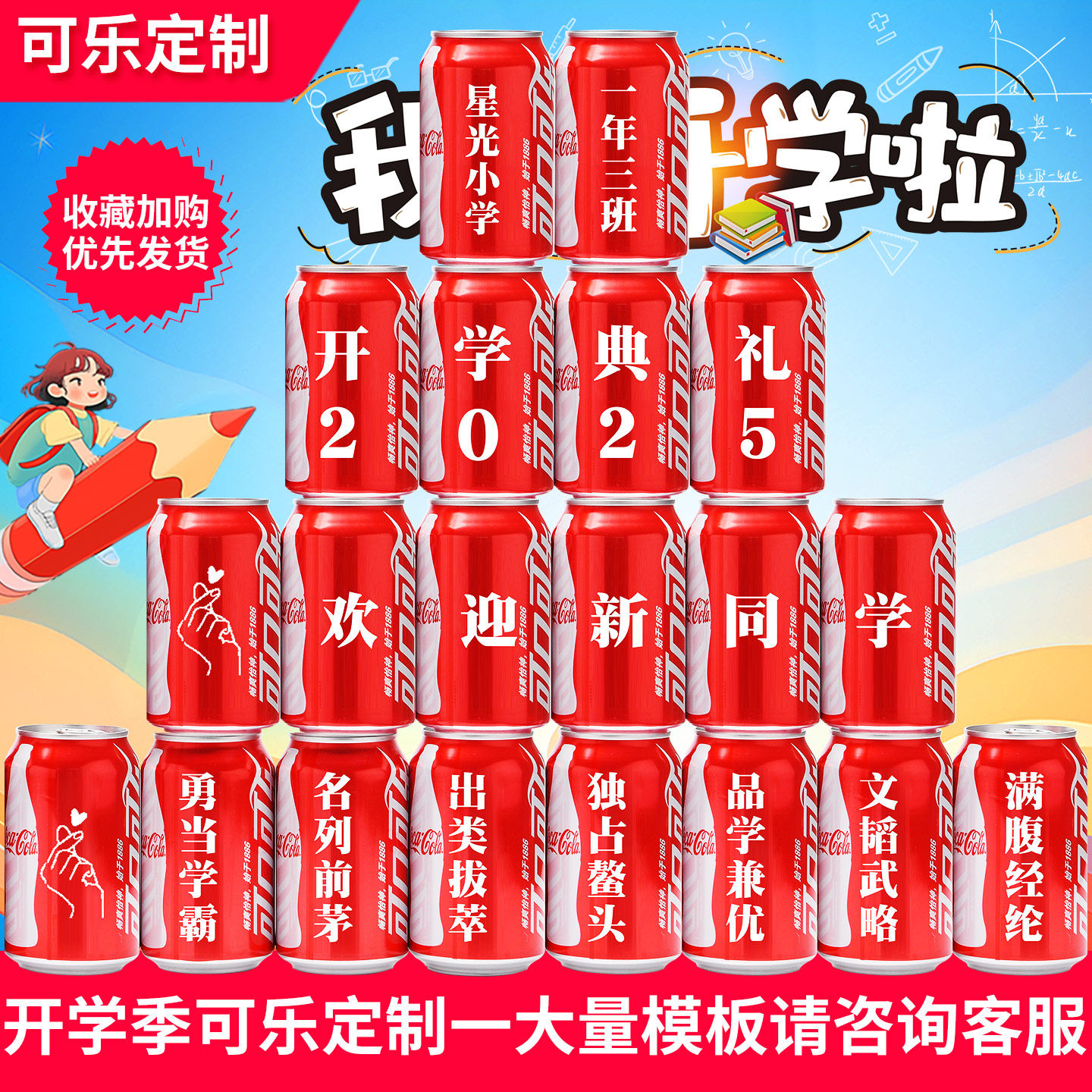 幼儿园开学仪式幼升小升初可乐定制刻字班级教室氛围布置励志礼物