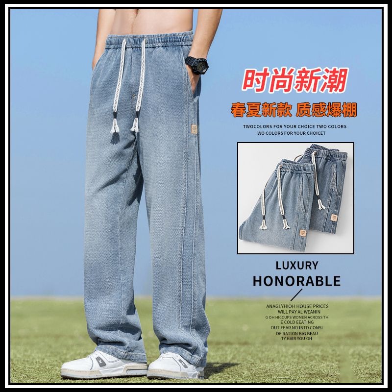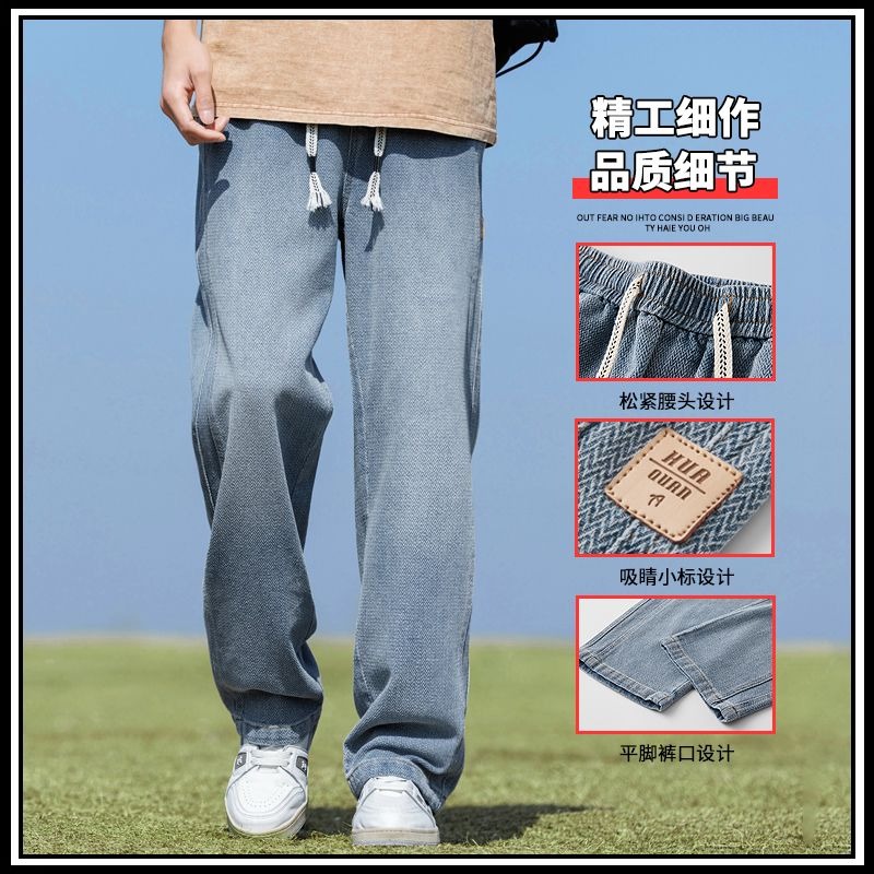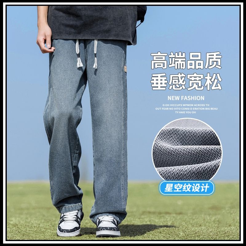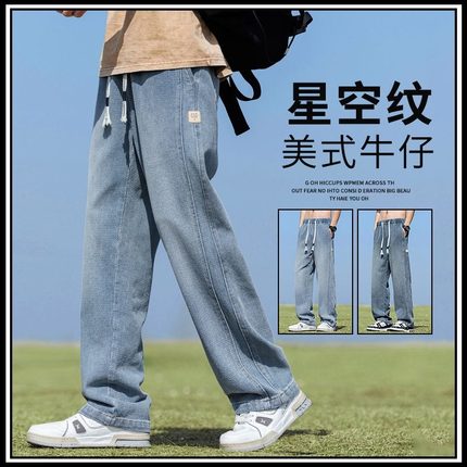 星空纹牛仔裤男士春季宽松直筒美式阔腿潮牌男生休闲长裤春夏新款