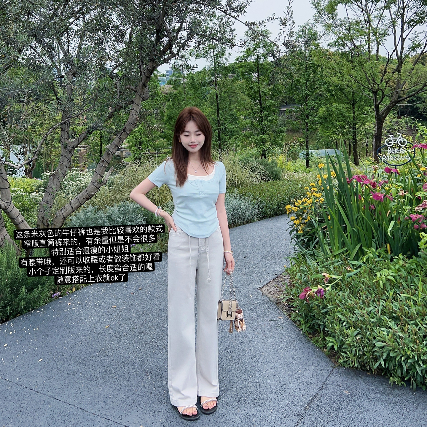 小小家 小个子小码米灰色窄版绑带牛仔裤直筒阔腿显高瘦长裤裤子