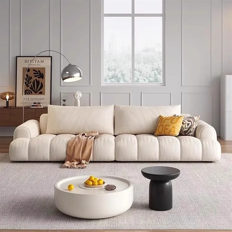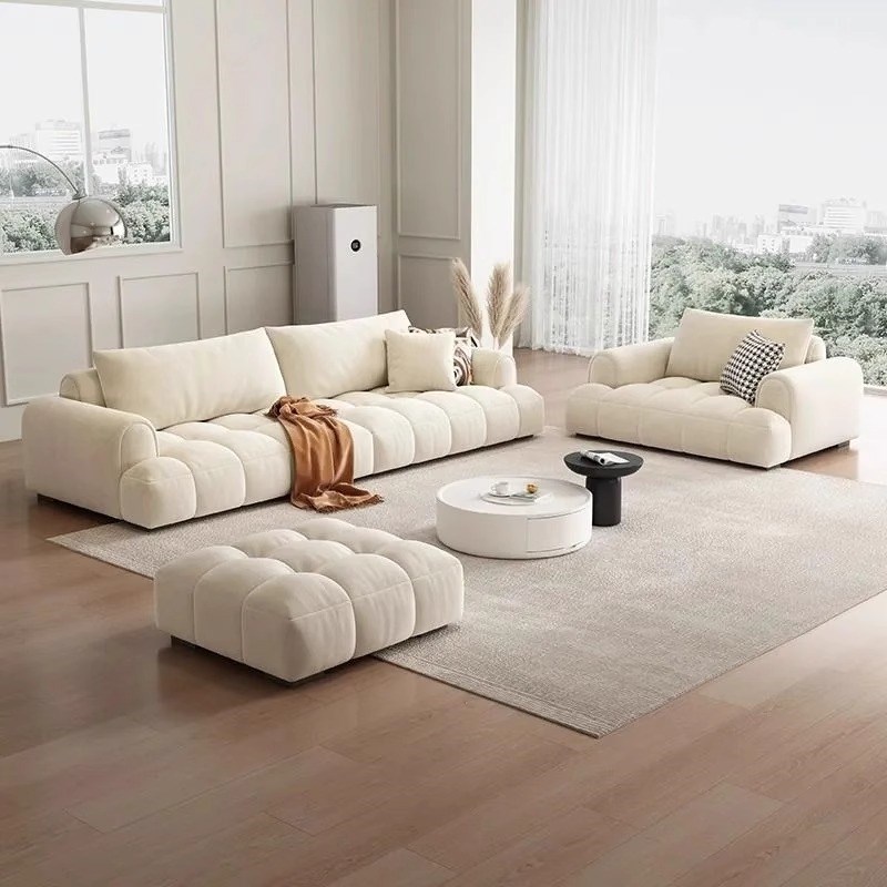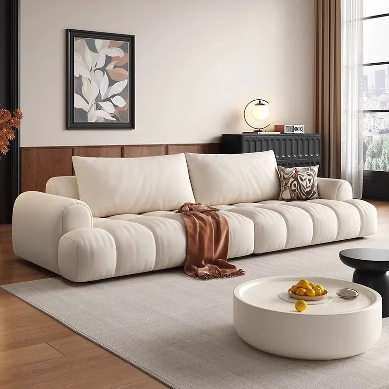 奶油风布艺沙发客厅泡芙猫抓布小户型直排双人三人位沙发简约现代