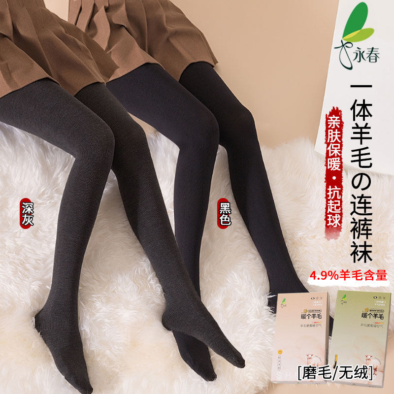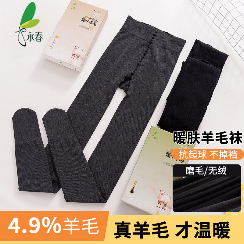 永春秋冬季加绒羊毛针织连裤袜女外穿羊绒加厚薄绒竖条纹打底裤袜
