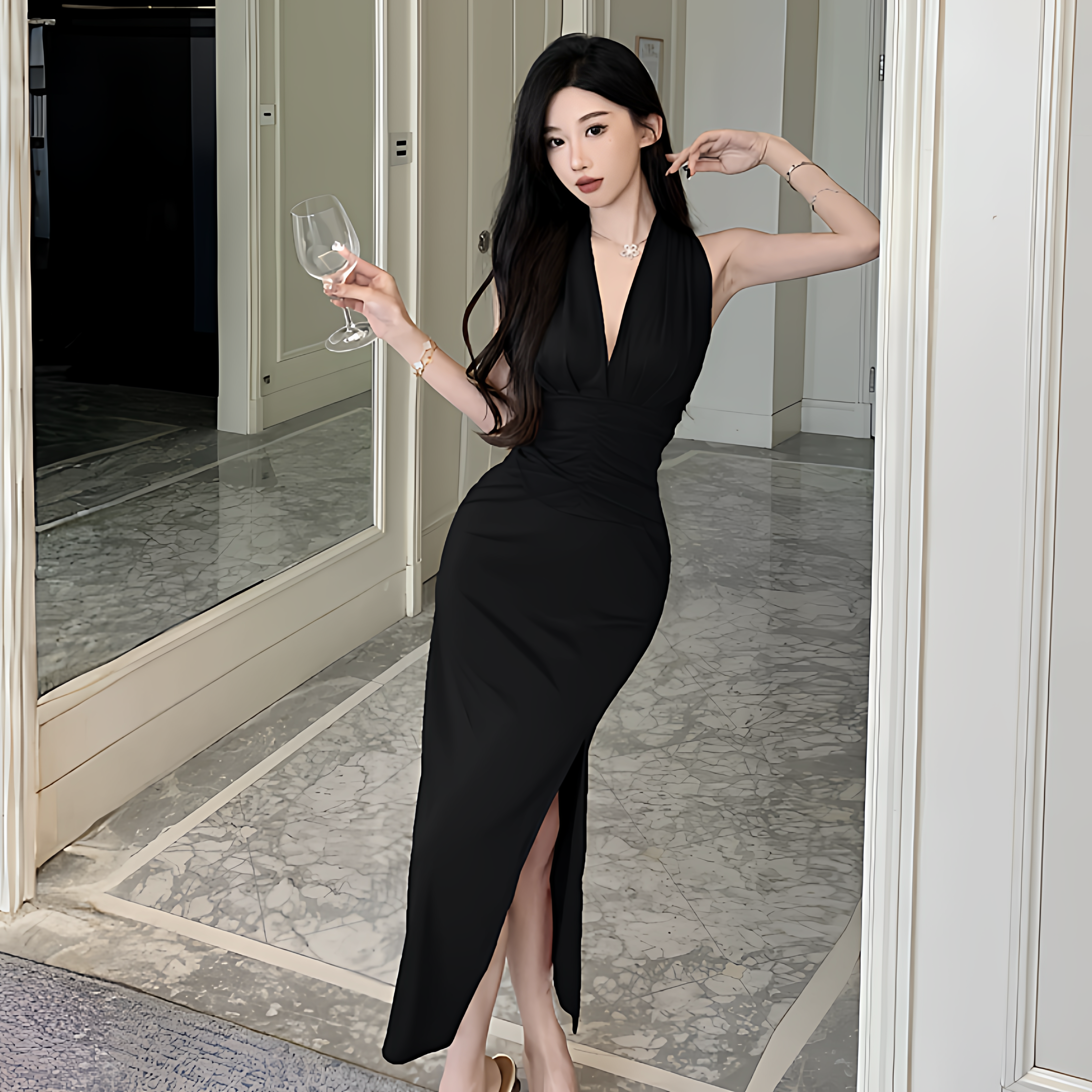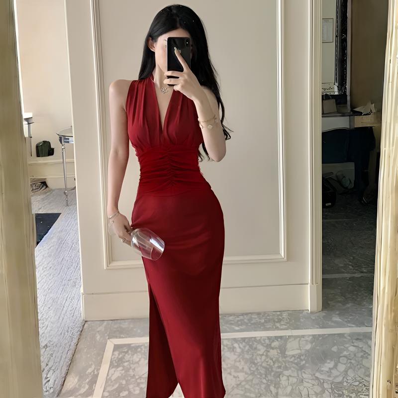 法式气质v领无袖连衣裙赫本风高级感裙子收腰显瘦长裙女夏季新款