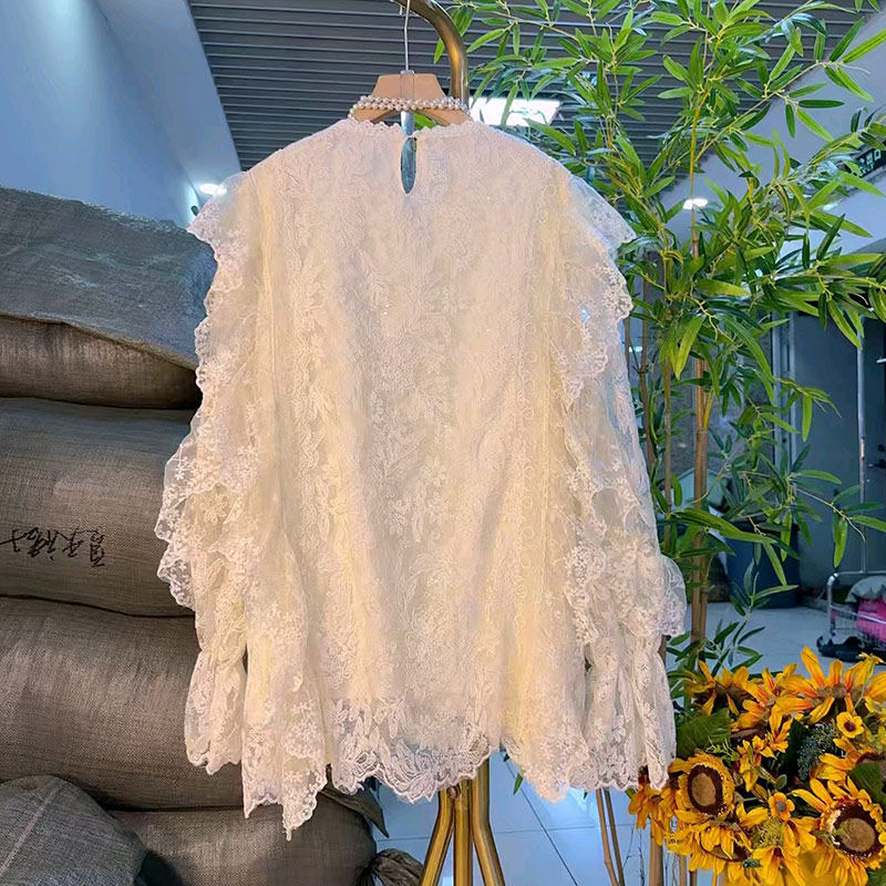 大码女装微喇袖口蕾丝小衫
