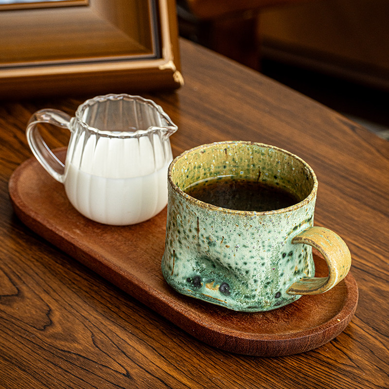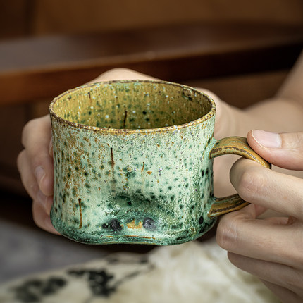 巷子尾〖国内手作〗手捏粗陶拿铁杯咖啡杯侘寂风茶杯个性马克杯