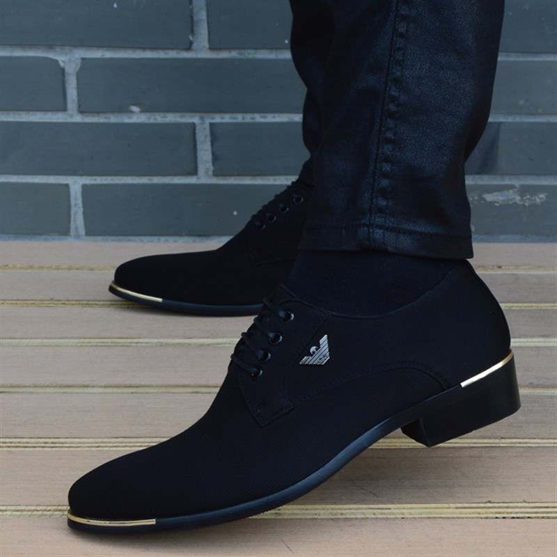 男士商务休闲皮鞋男布面英伦黑色尖头系带时尚韩版透气内增高男鞋