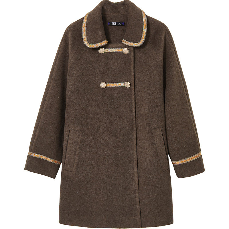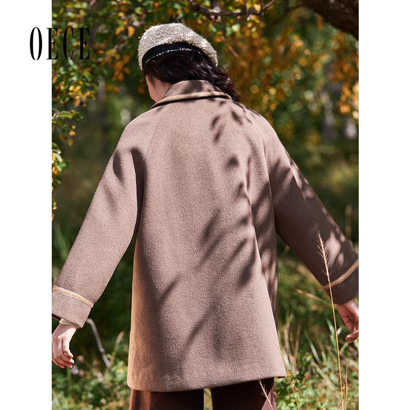 Oece冬新款女学院文艺复古呢子大衣中长款毛呢外套