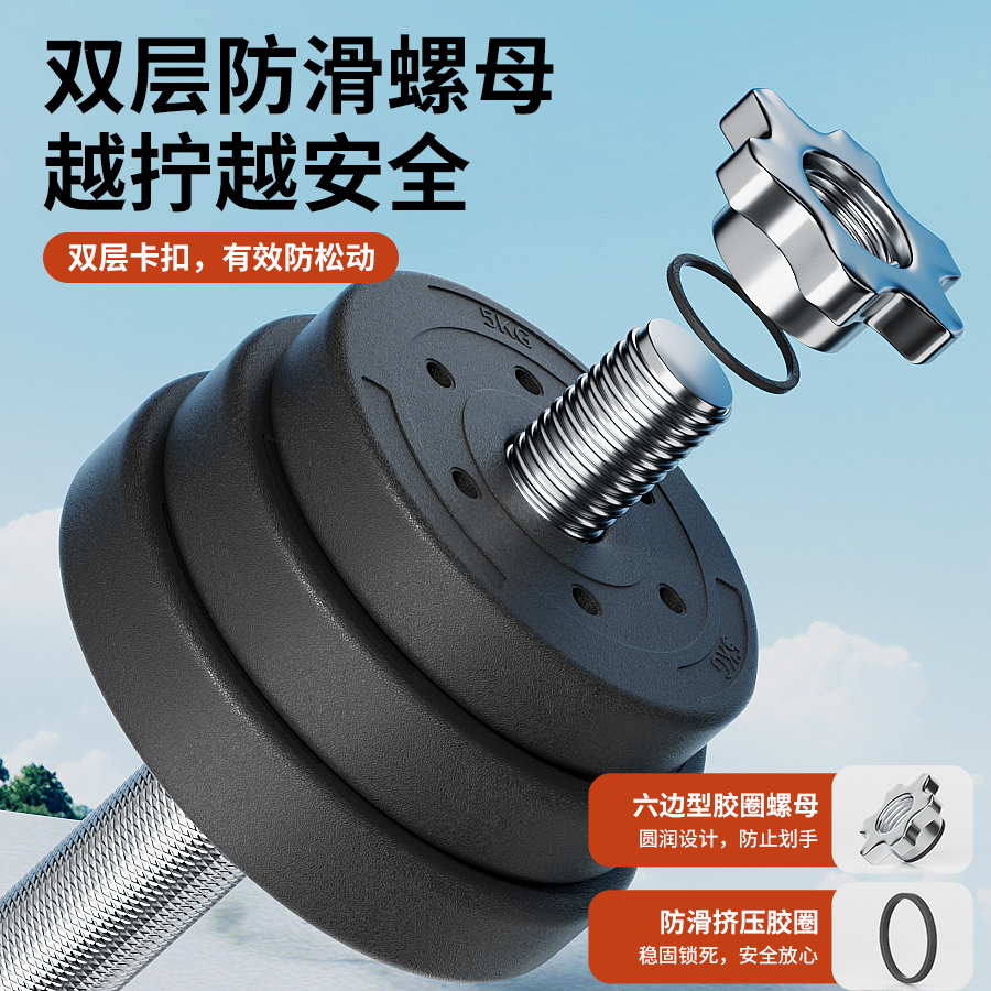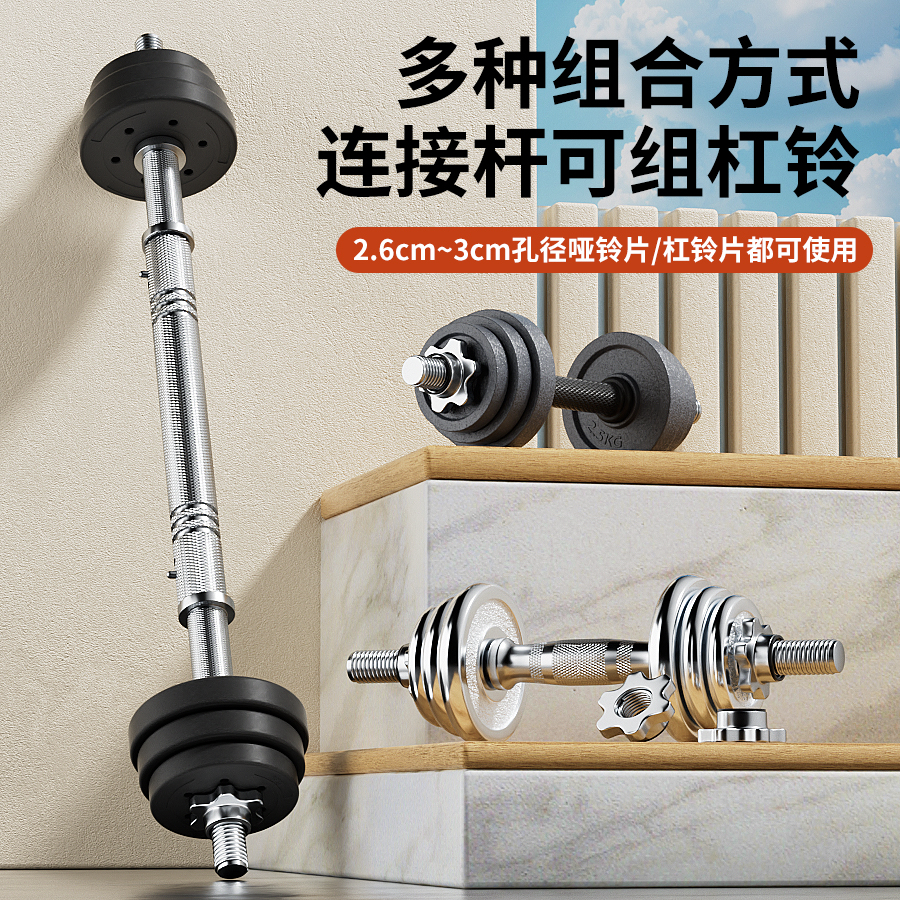 纯铁铸实心哑铃棍哑铃螺纹棒电镀彩胶枣核丝光杆杠铃杆连接器配件
