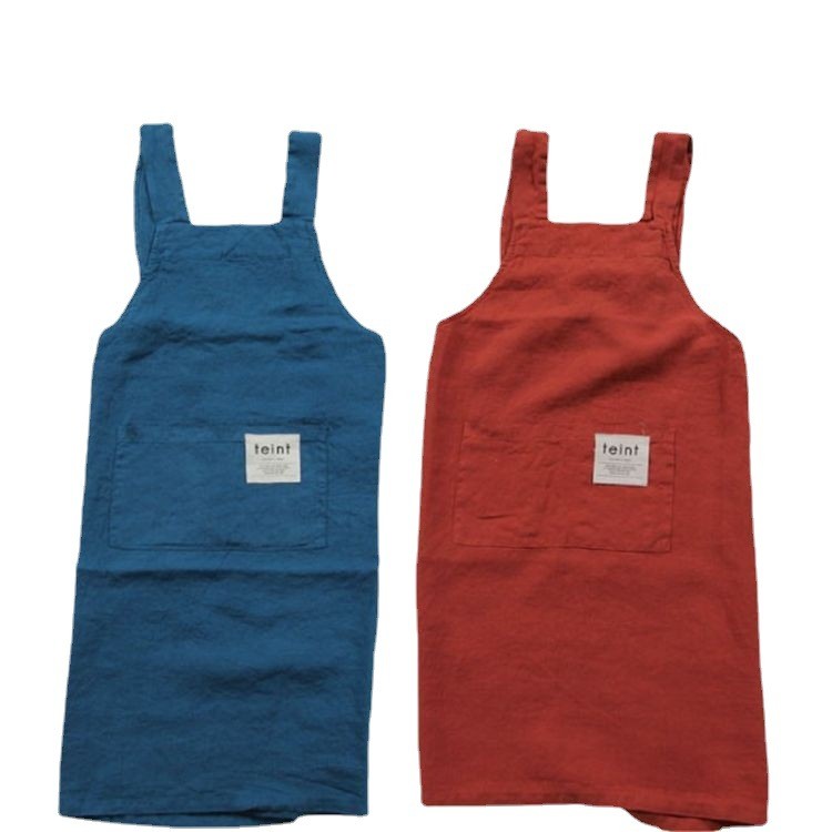 新款日韩式系亚麻料围裙时尚可爱家用鲜花店用服务员可印字护理