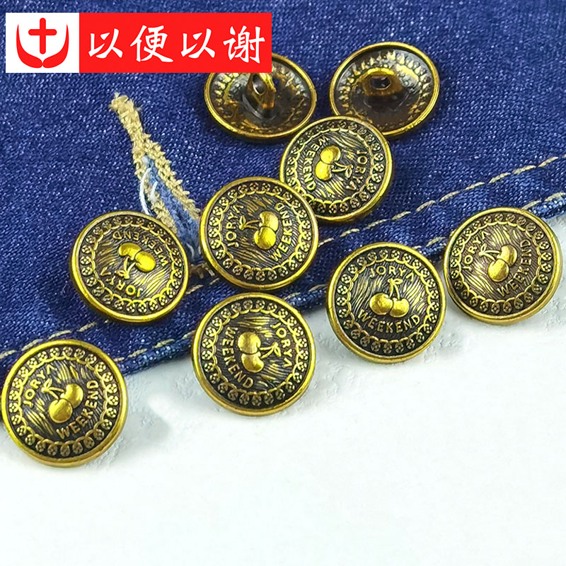 金属圆字母樱桃古金手缝纽扣大衣西装牛仔长袖风衣针织裤裙装饰扣