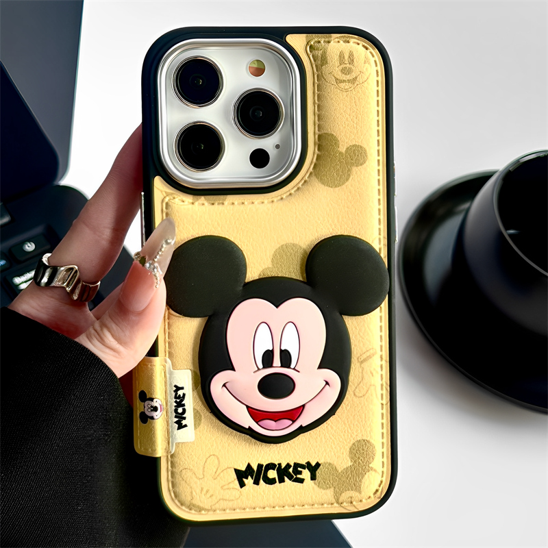 趣味可爱立体米奇适用iphone16pro苹果15手机壳新款14pro情侣13promax全包防摔保护套16皮质纹小众风女高级感