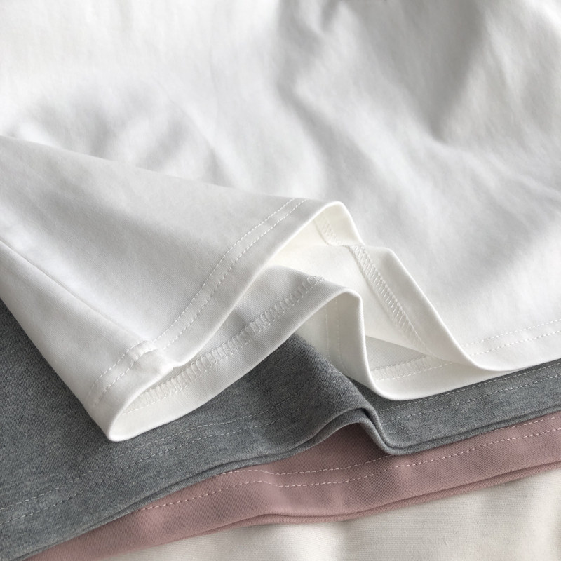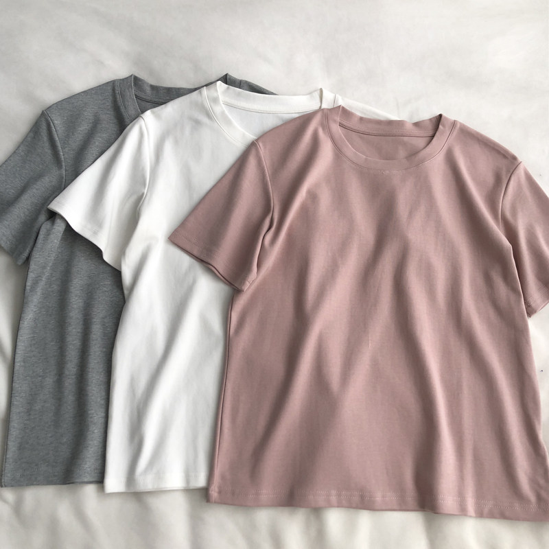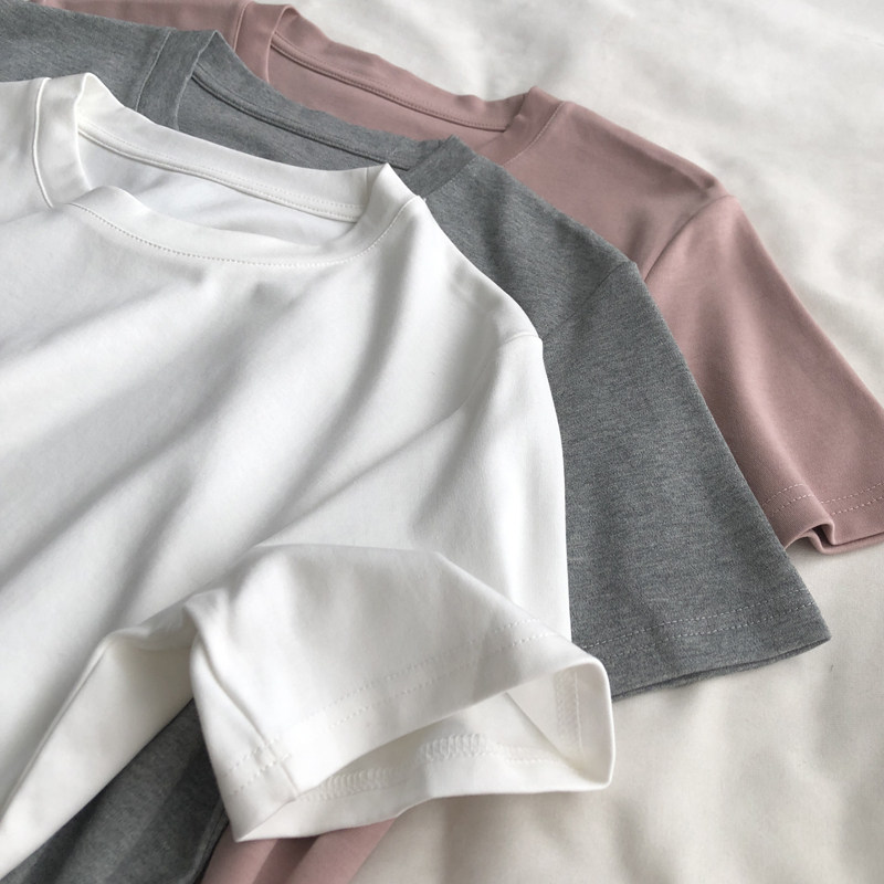 净版舒适 韩版纯色百搭圆领正肩显瘦T恤短袖夏季百搭宽松打底上衣