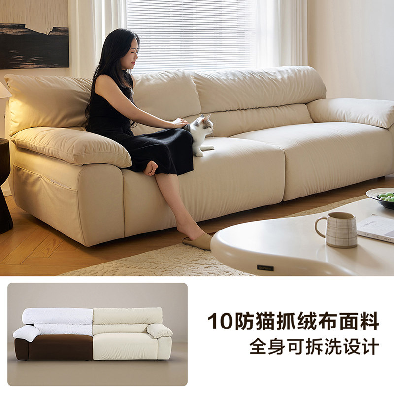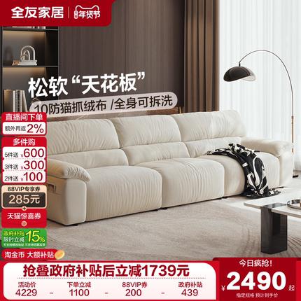 全友家居现代简约猫抓布艺沙发2025新款客厅直排羽绒沙发可拆洗