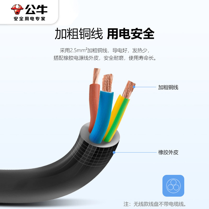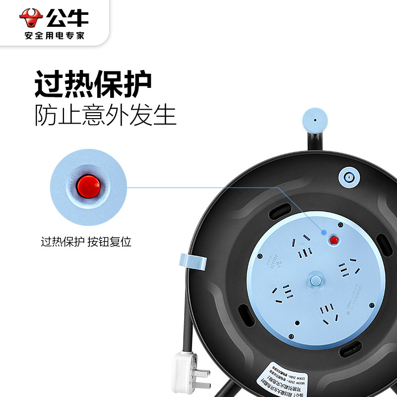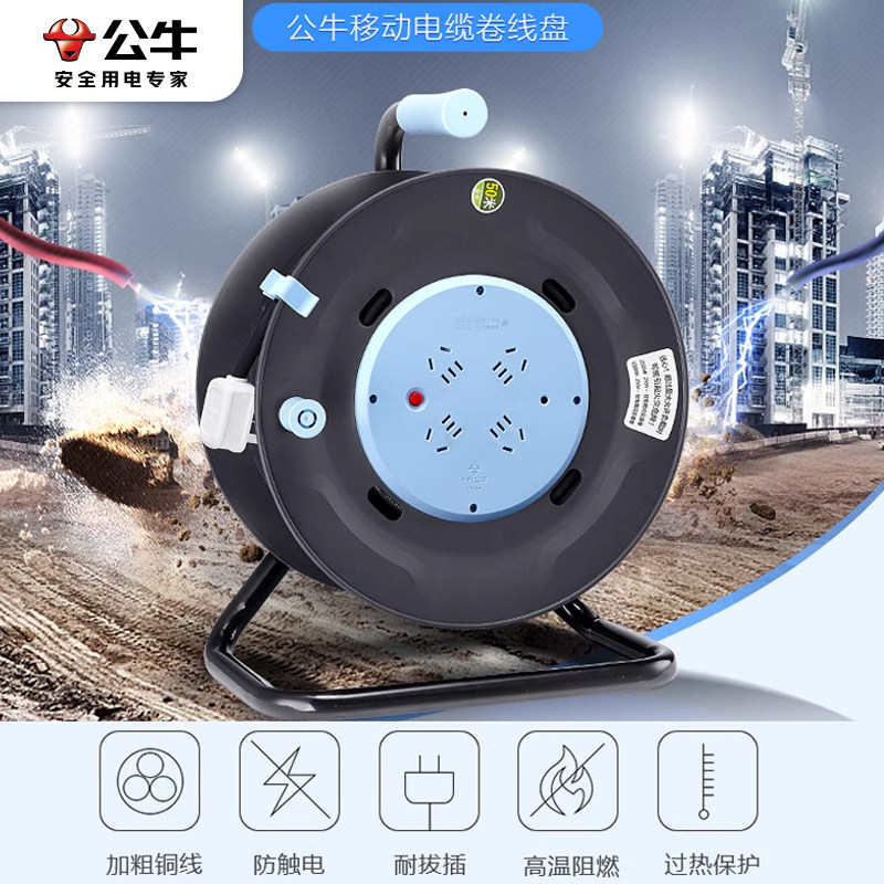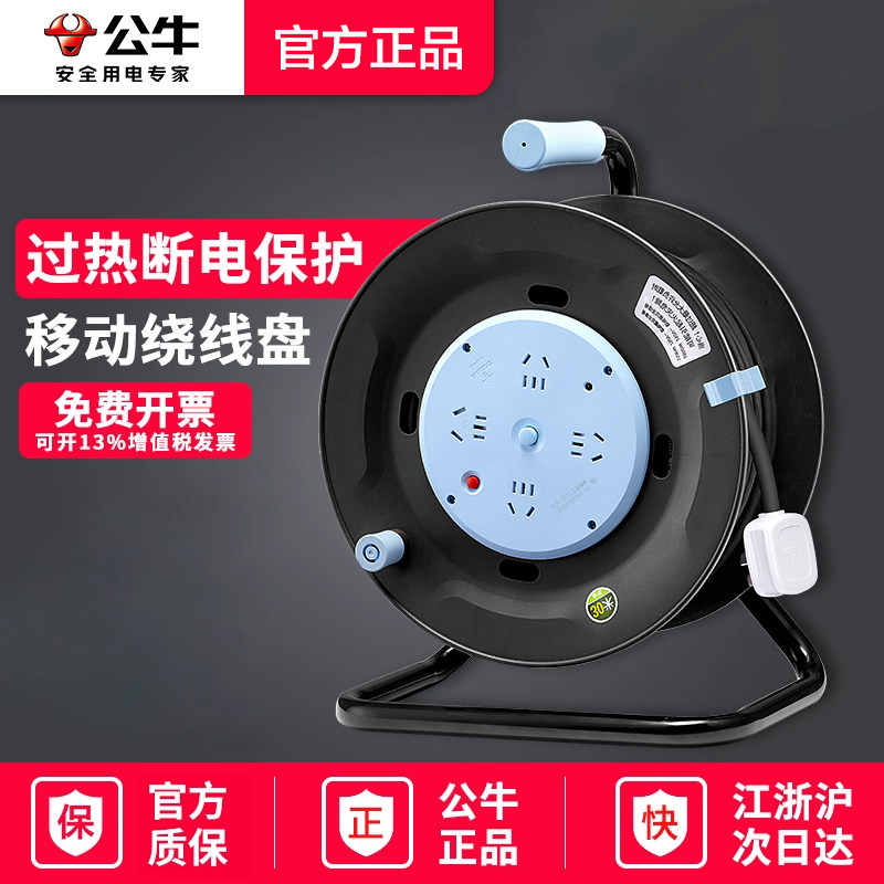 公牛线盘空盘插座插盘20/30/50米长轴电缆卷线盘轮绕线滚子移动式