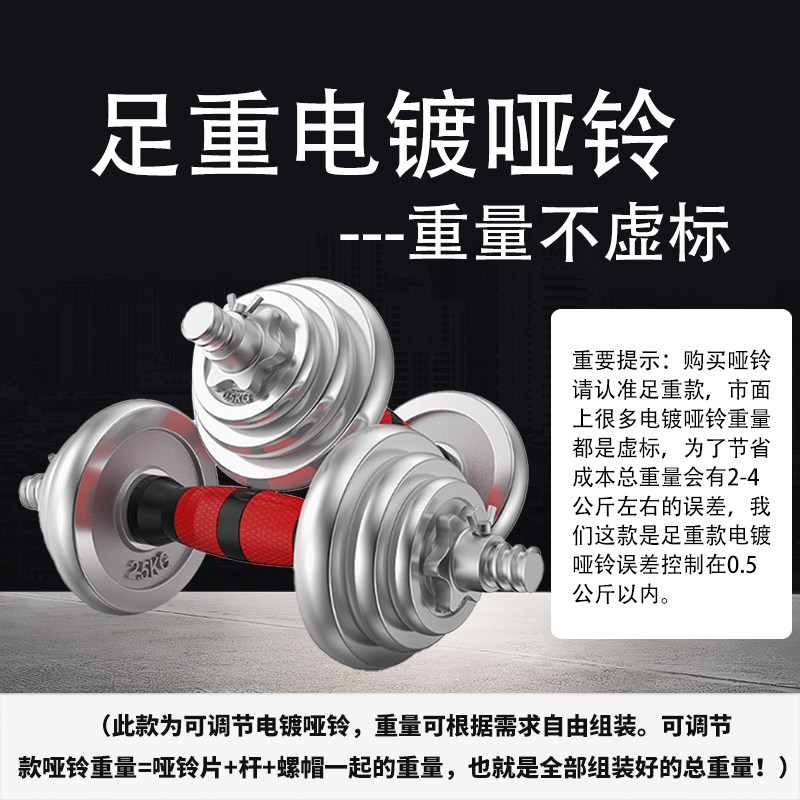 电镀哑铃男士健身家用器材可调节重量杠铃盒装套装20kg30公斤足重