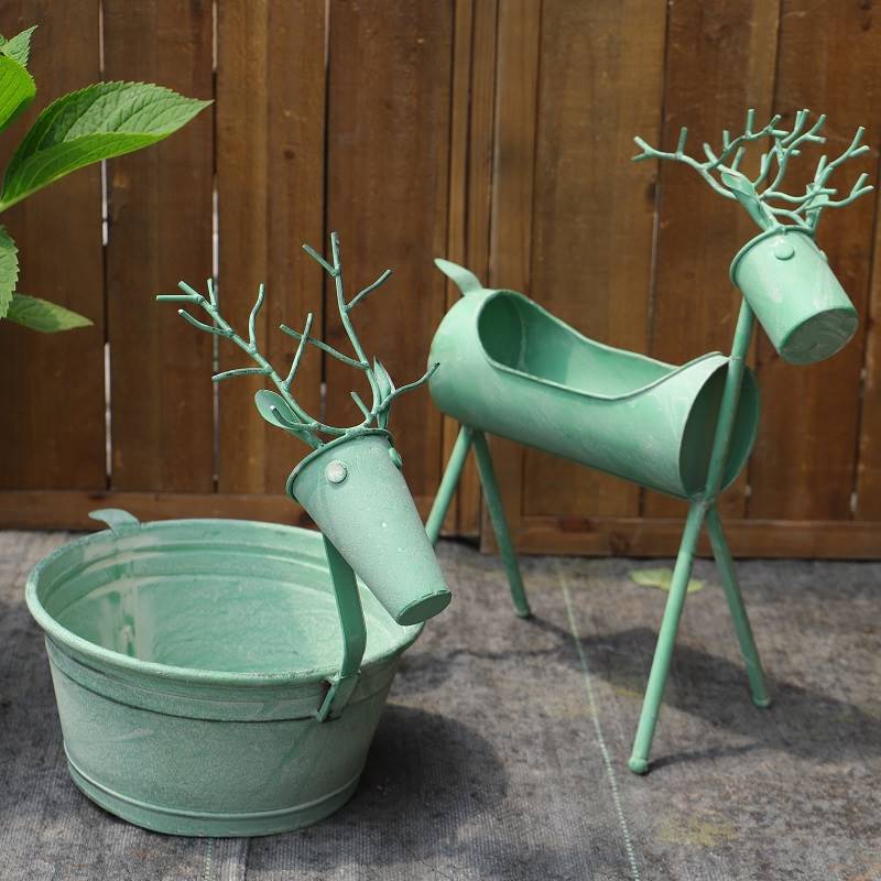 极速铁艺做旧小鹿花盆花架阳台花C园户外花房落地卡通多肉花箱装