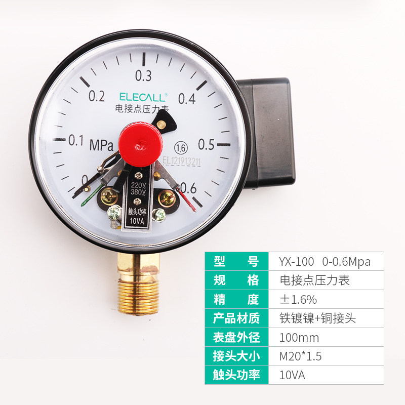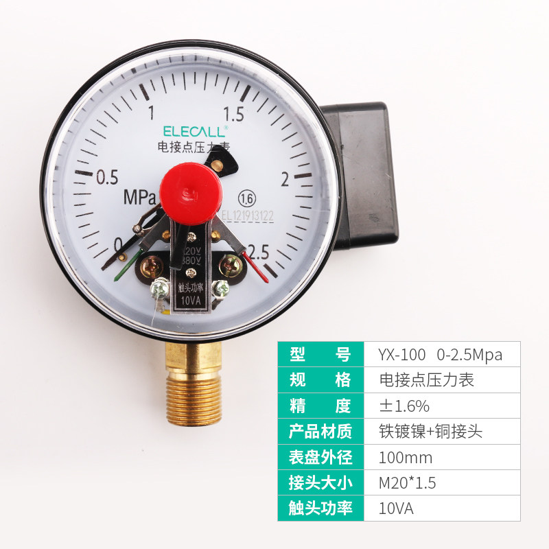 YX-100电接点磁助式压力表水压油压气压真空表1.6压差负压表40mpa