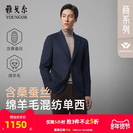 雅戈尔男士西服春秋新款官方商务休闲高性价比羊毛桑蚕丝单西外套