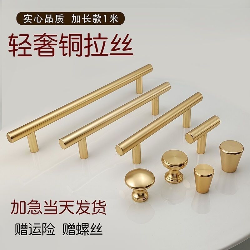 北欧轻奢金色加长拉手柜门抽屉现代简约黄铜拉丝衣柜橱柜门圆拉手