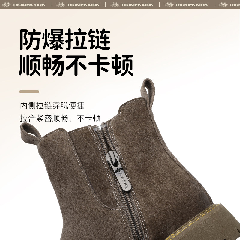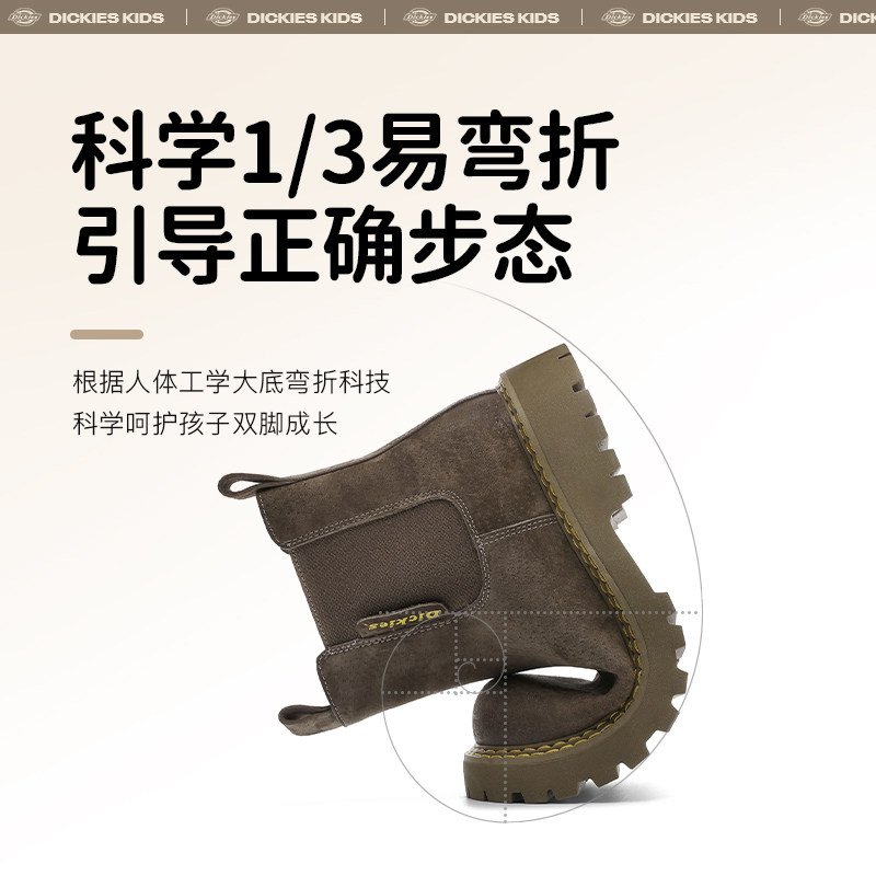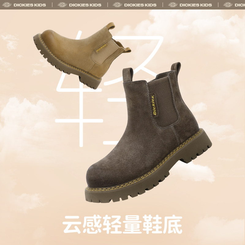 Dickies女童马丁靴儿童驼色洋气工装小短靴男童户外时尚切尔西靴