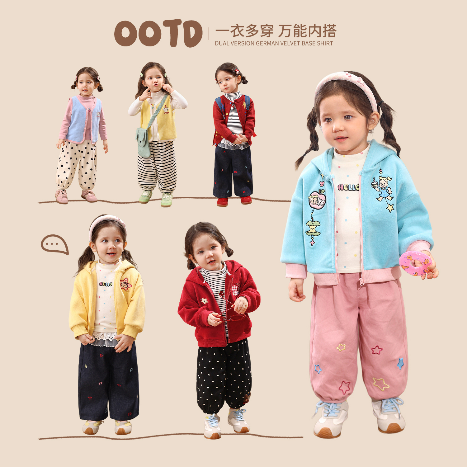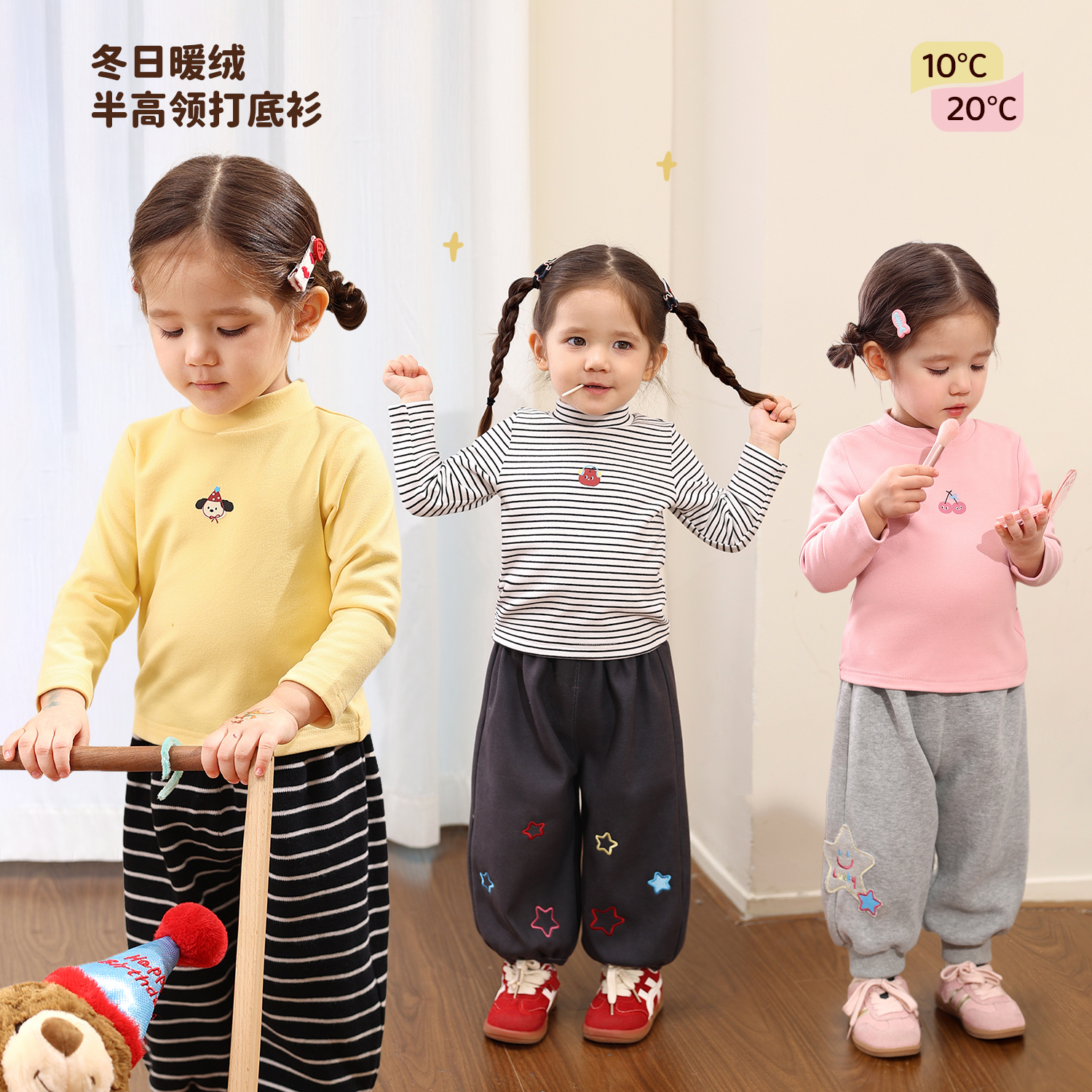 小o爸女婴童女宝宝加绒打底衫2025冬季新款婴儿德绒保暖半高领T恤