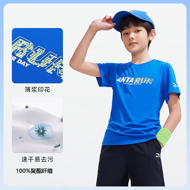 安踏儿童短袖T恤2025秋季男童速干透气短t中大童男孩夏装运动上衣