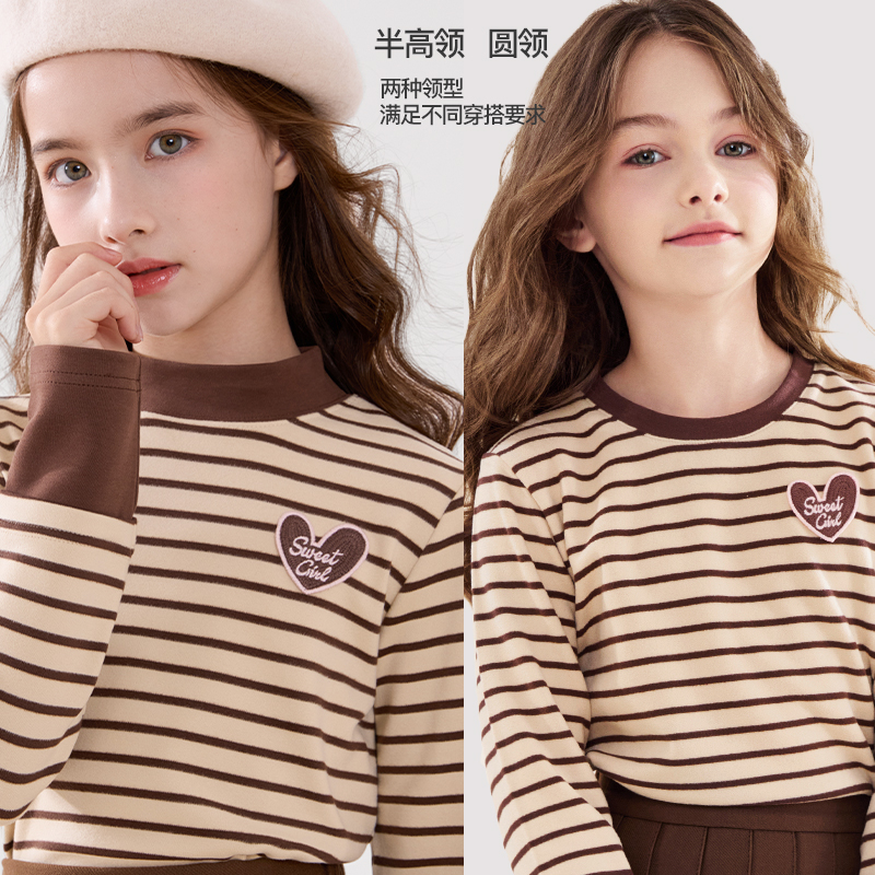 女童长袖T恤儿童秋冬装新款打底衫中大童洋气上衣半高领时尚童装