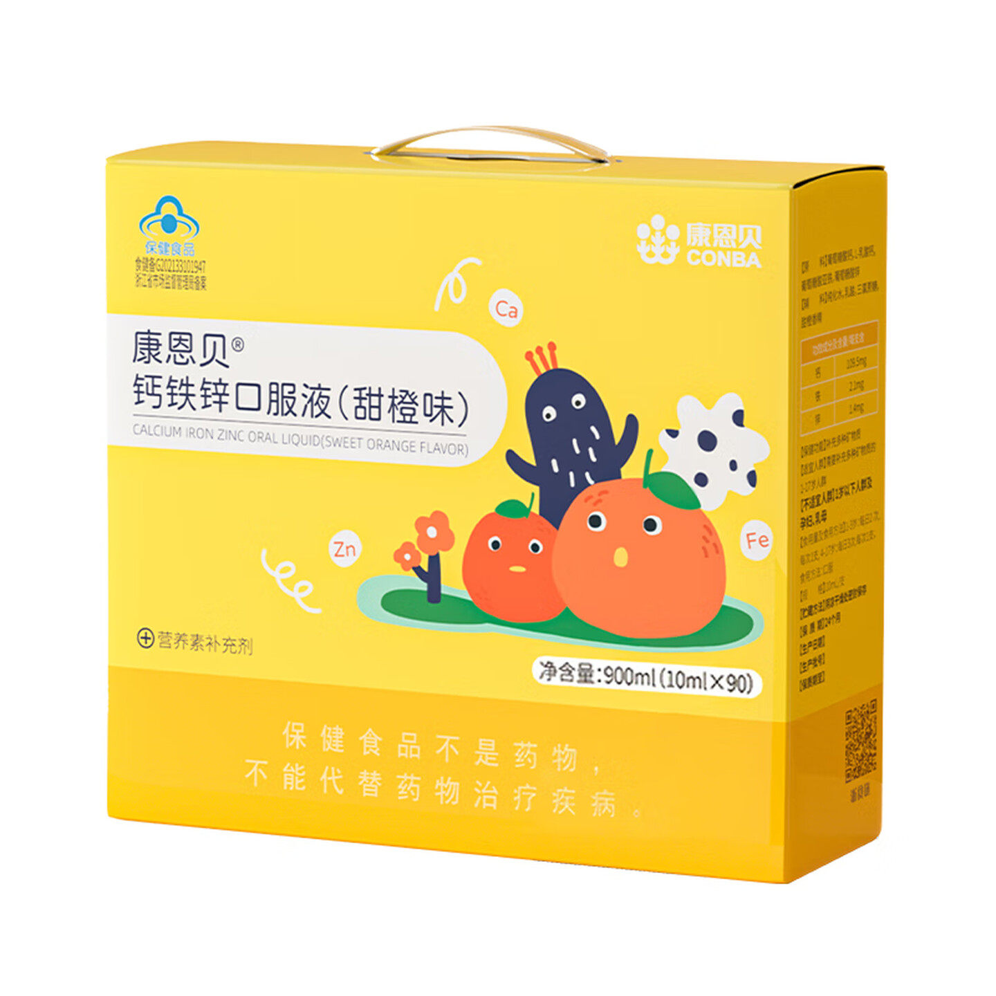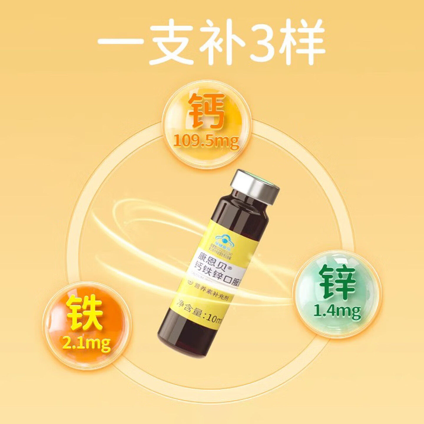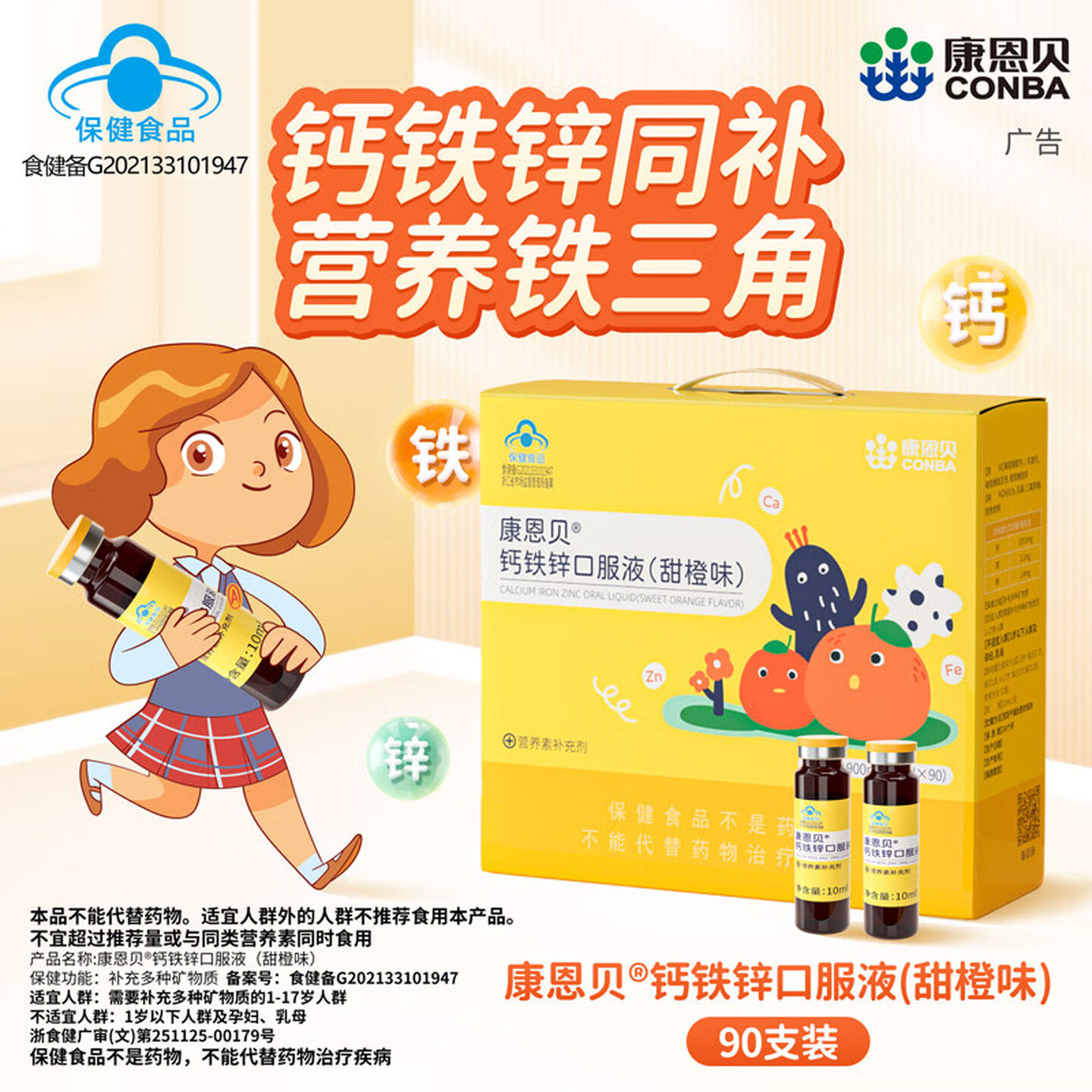 康恩贝钙铁锌口服液甜橙味 10ml*90支 葡萄糖钙补锌
