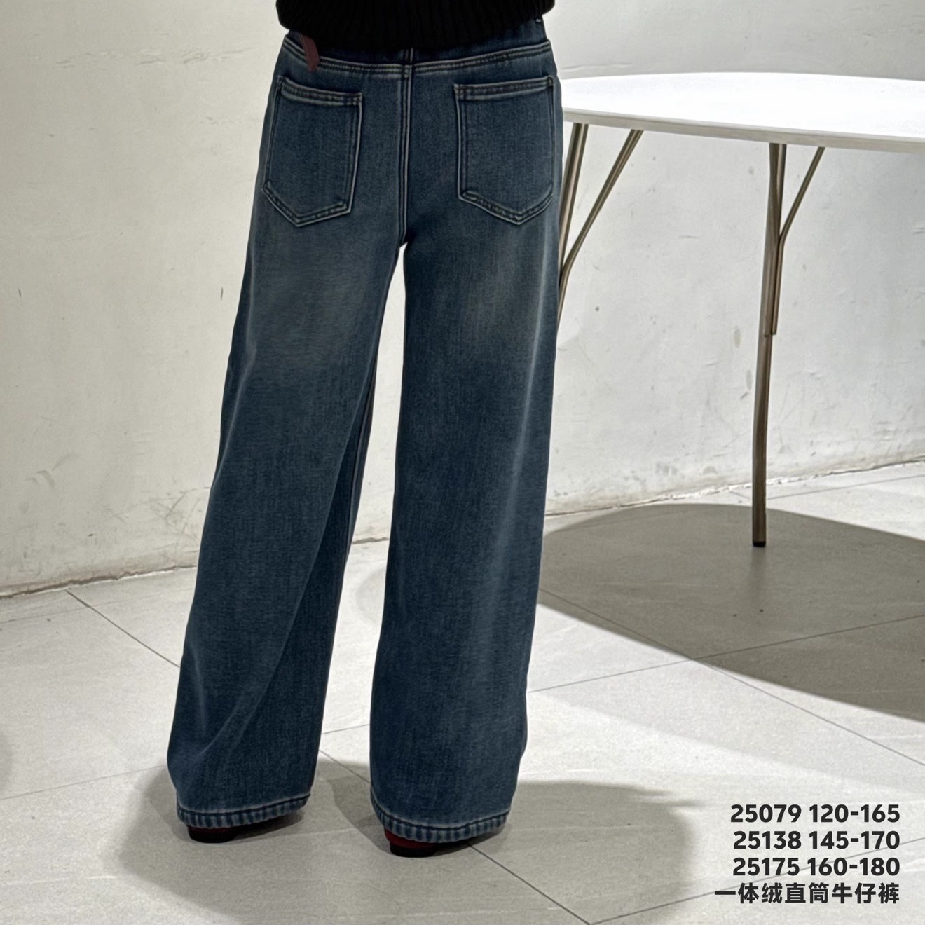 天依角2025冬25079新款25138一体25175加绒窄版直筒牛仔裤男女童