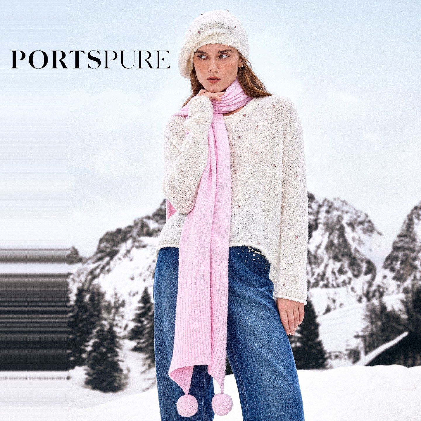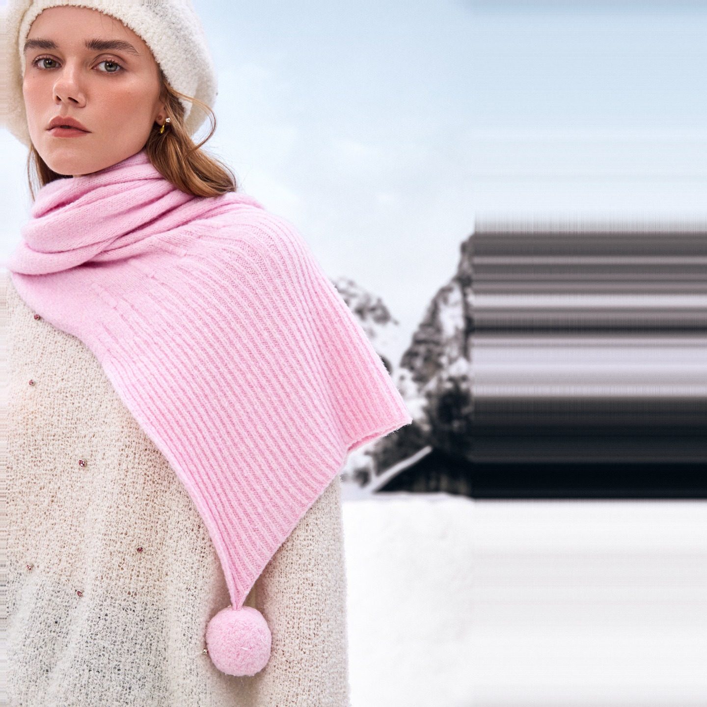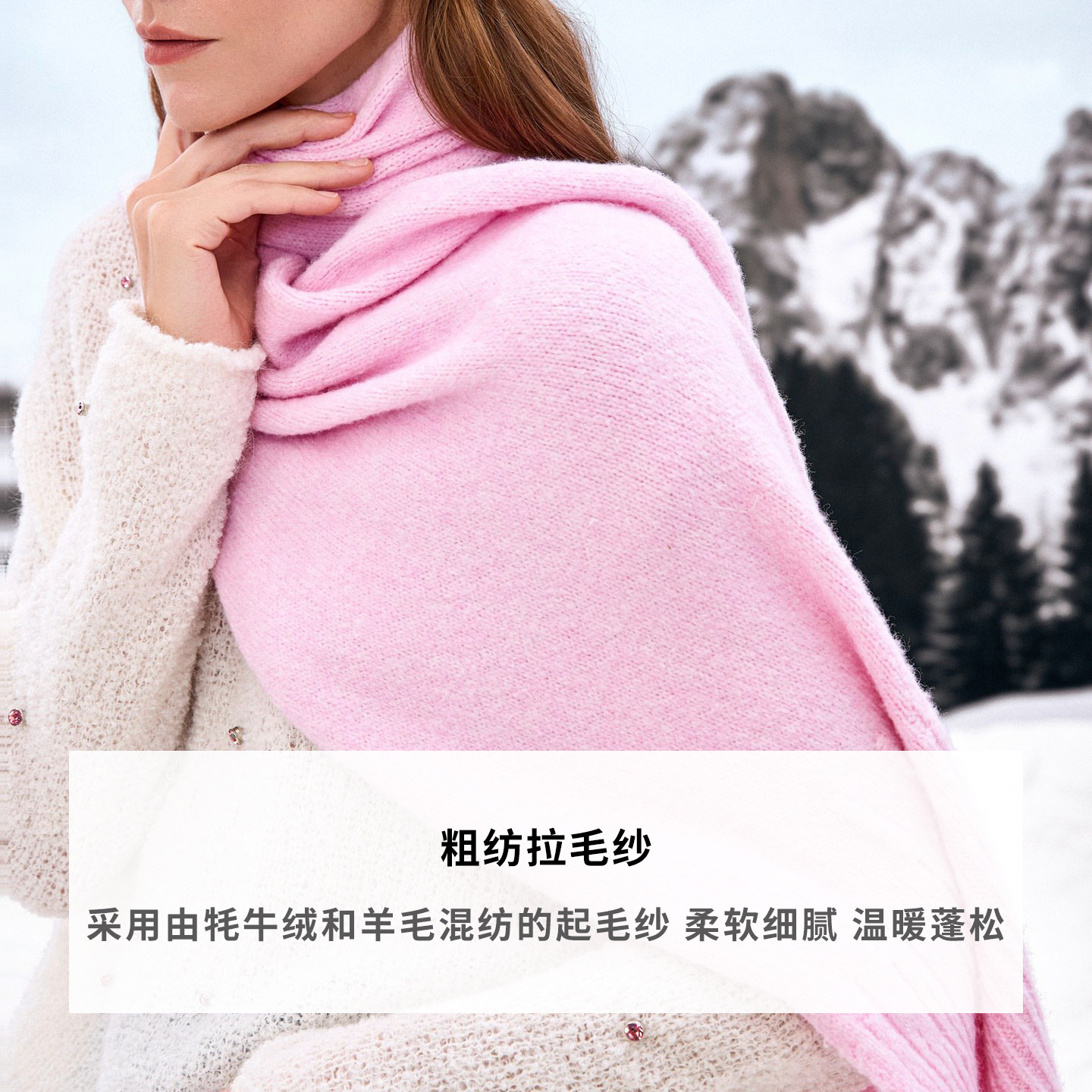 商场同款 宝姿PORTSPURE女装2025秋冬新品软糯温暖粉色绒毛球围巾