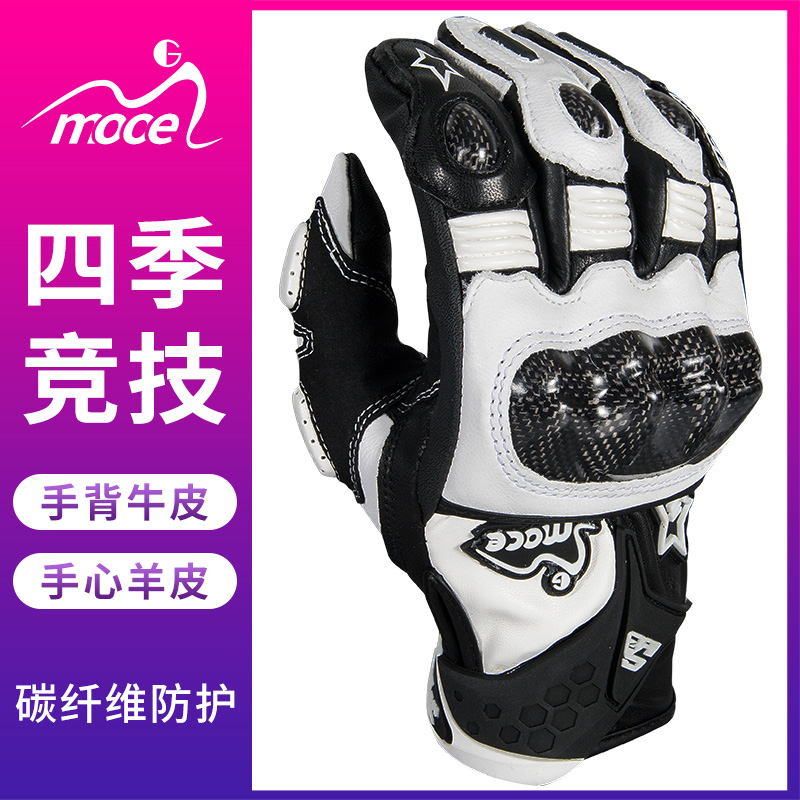摩戈摩托车手套男士碳纤维骑行真皮装备骑士四季赛车保暖机车冬季