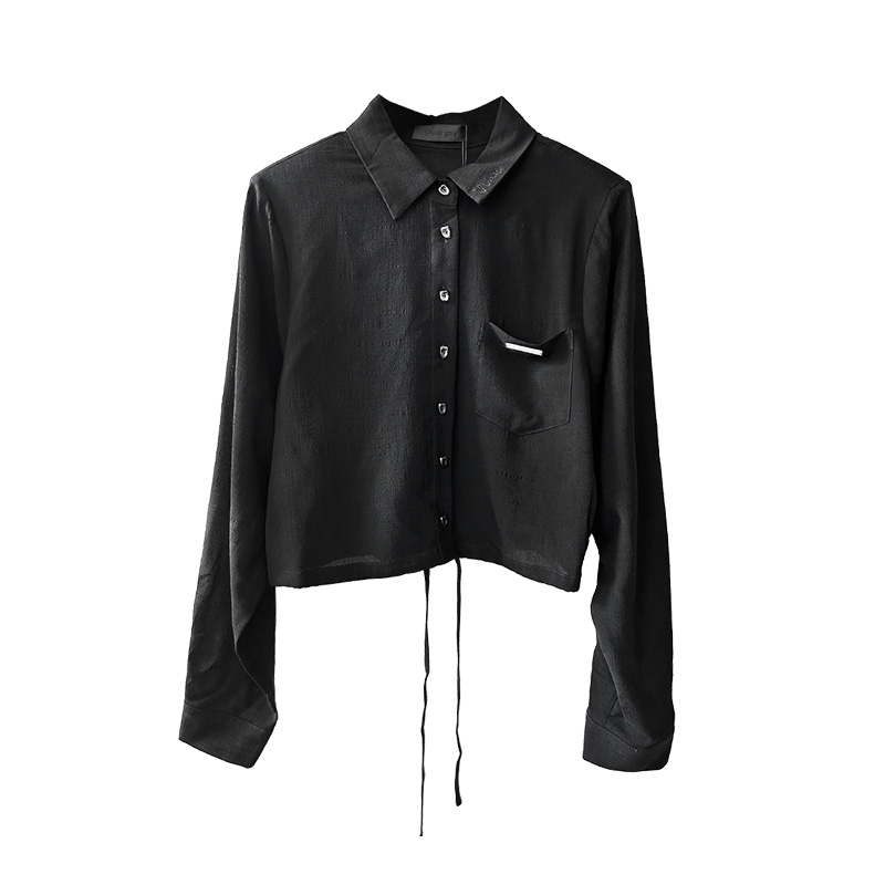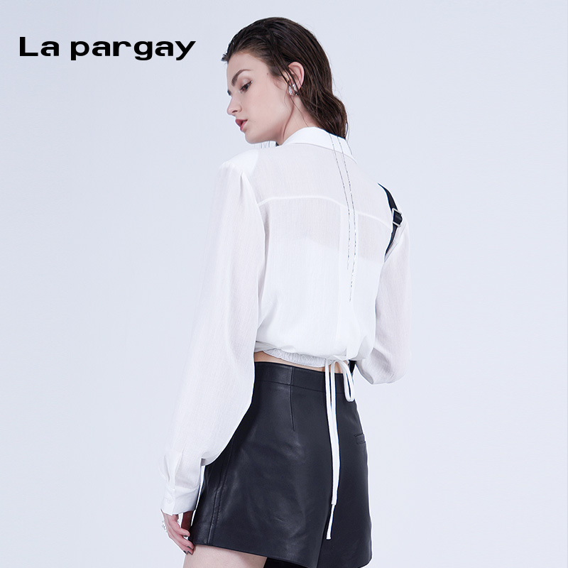 La pargay纳帕佳2025年夏POLO领长袖衬衣小众简约气质上衣女短款