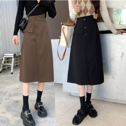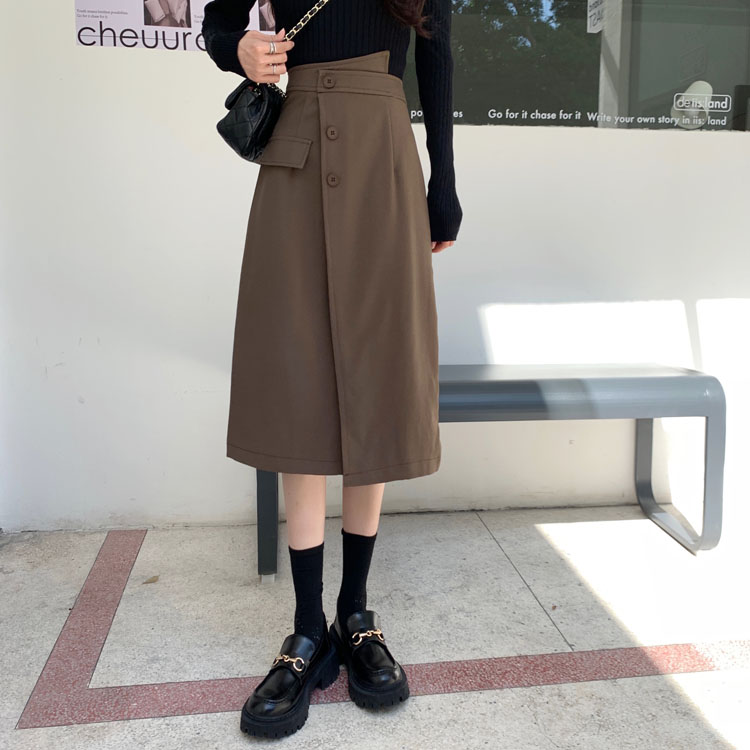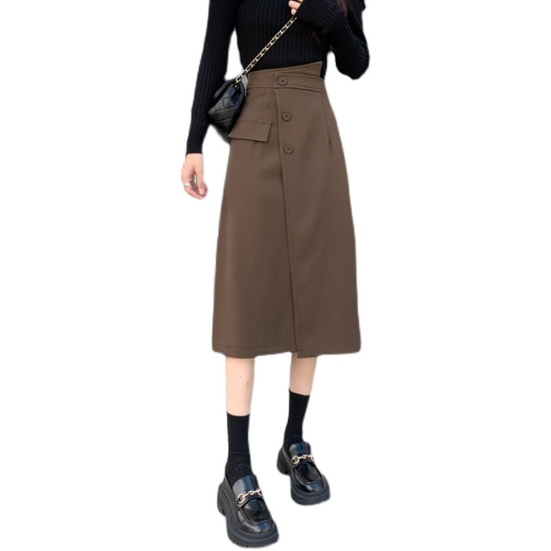 咖色半身裙秋冬大码显瘦开叉遮肚