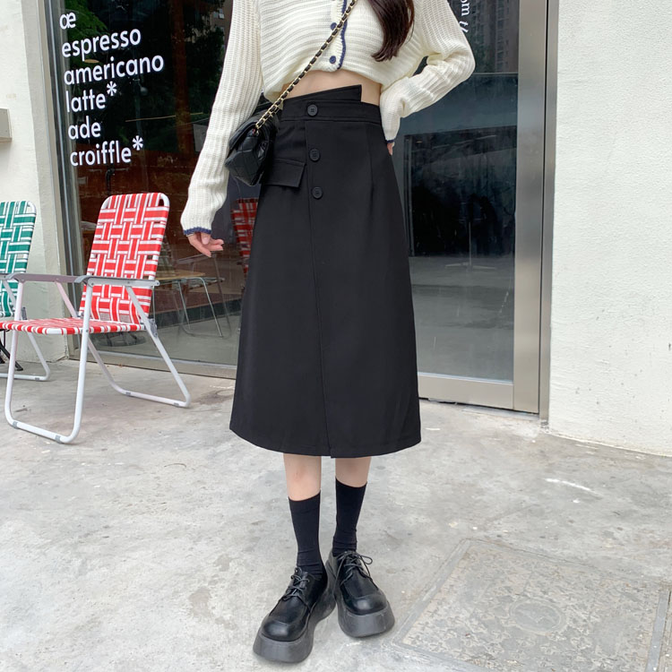 不规则高腰咖色半身裙女中长款秋冬大码显瘦包臀裙开叉遮肚一步裙