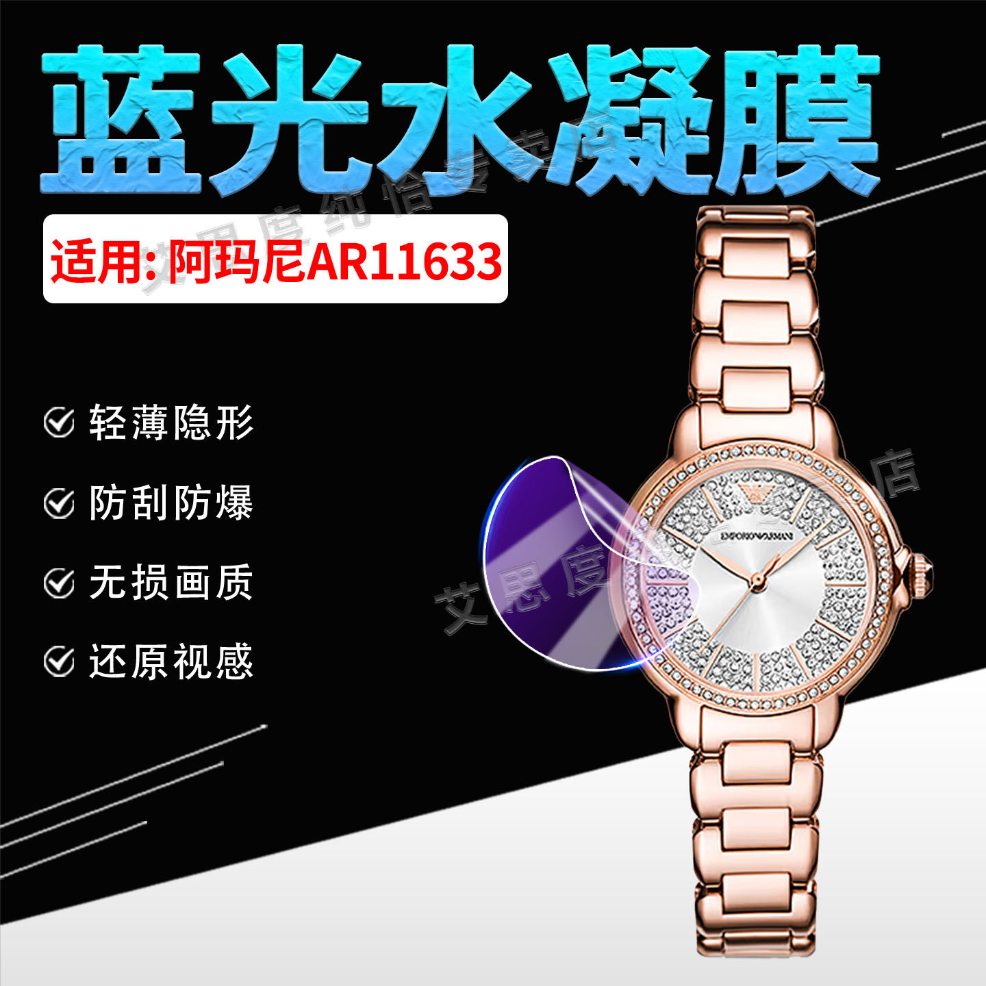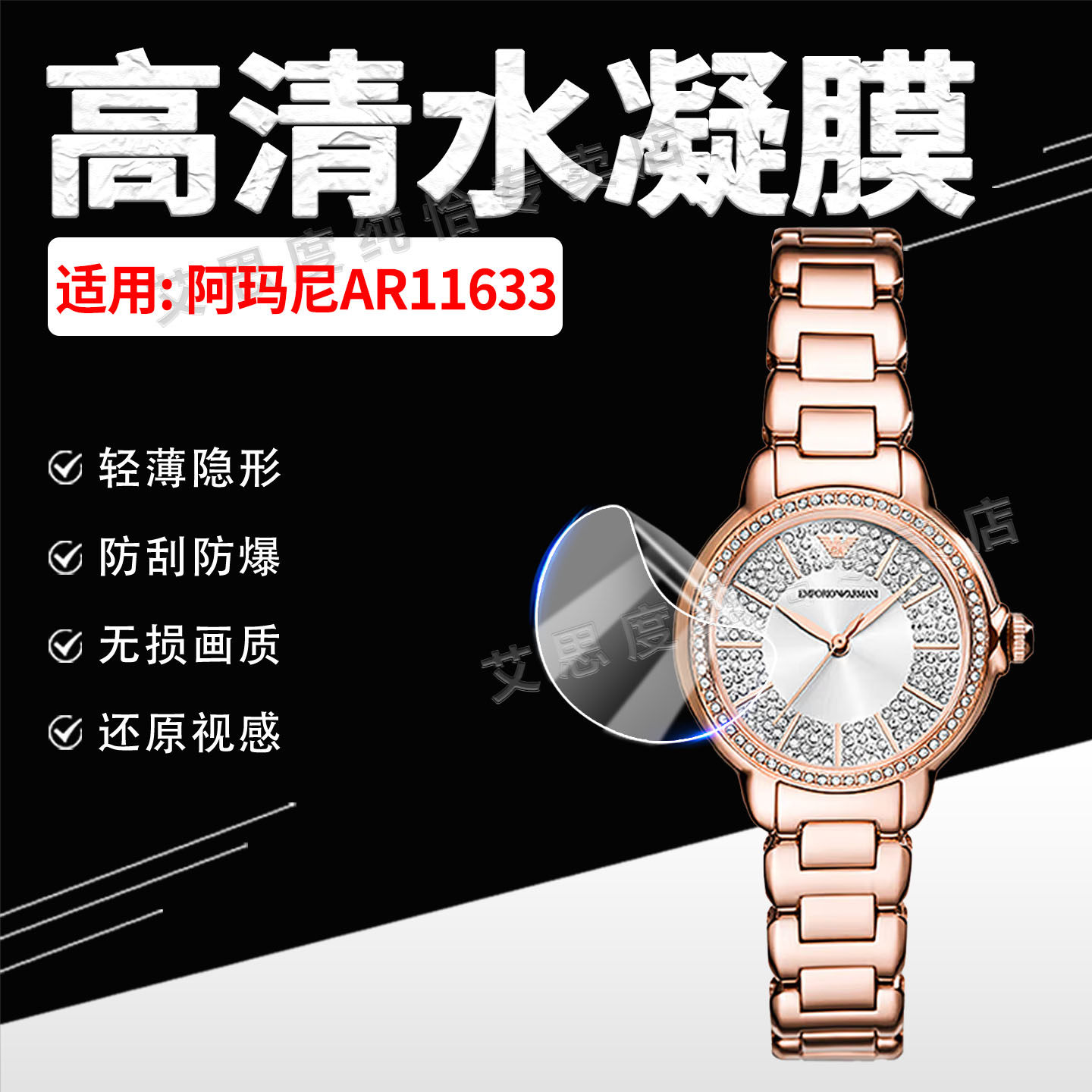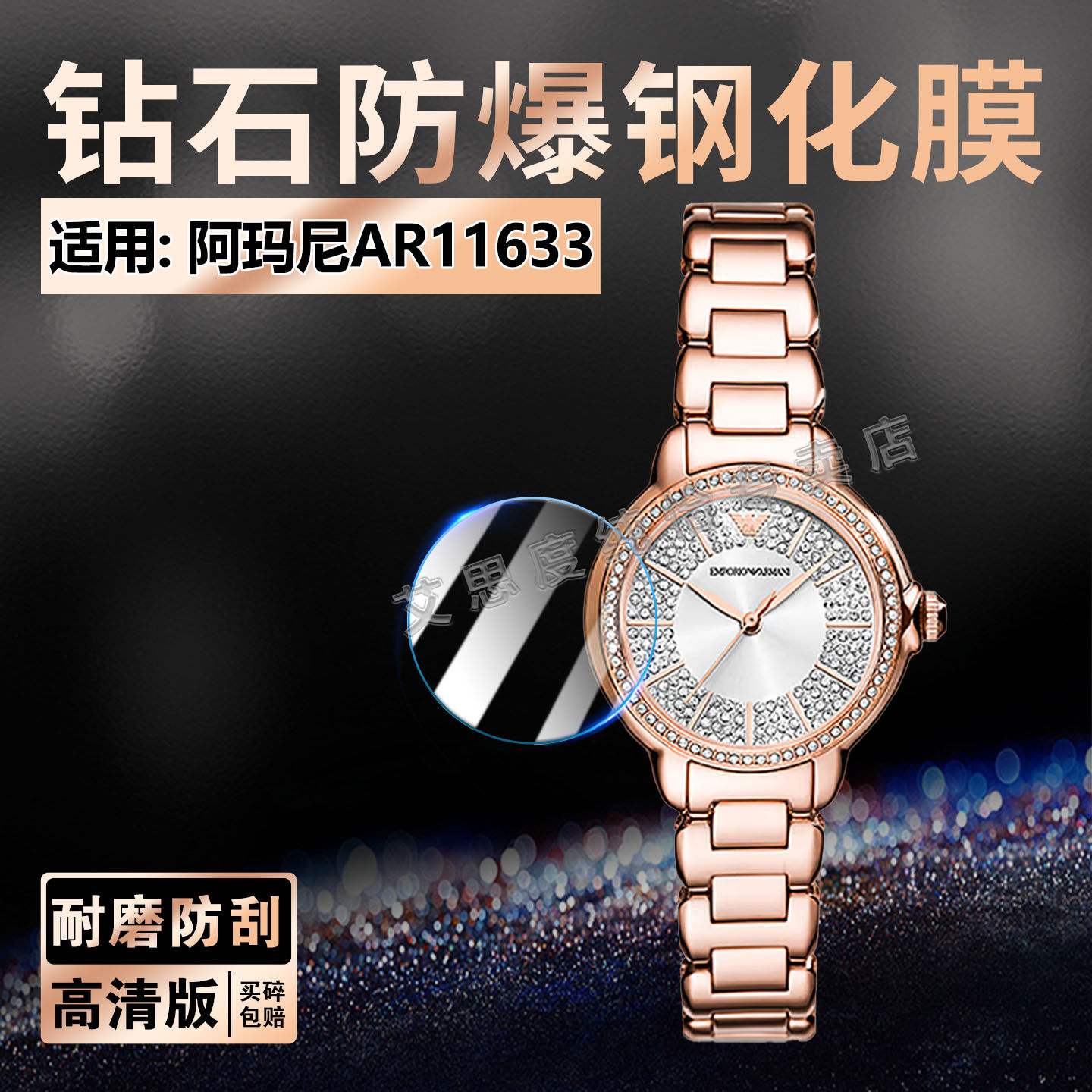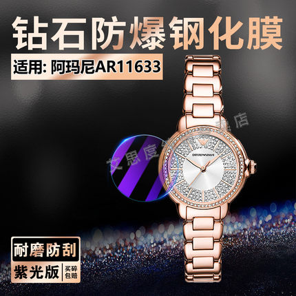 适用阿玛尼AR11633手表钢化膜满天星系列AR11633屏幕玻璃贴钻石女表钢带腕表水凝软膜AR11632防爆防刮保护膜