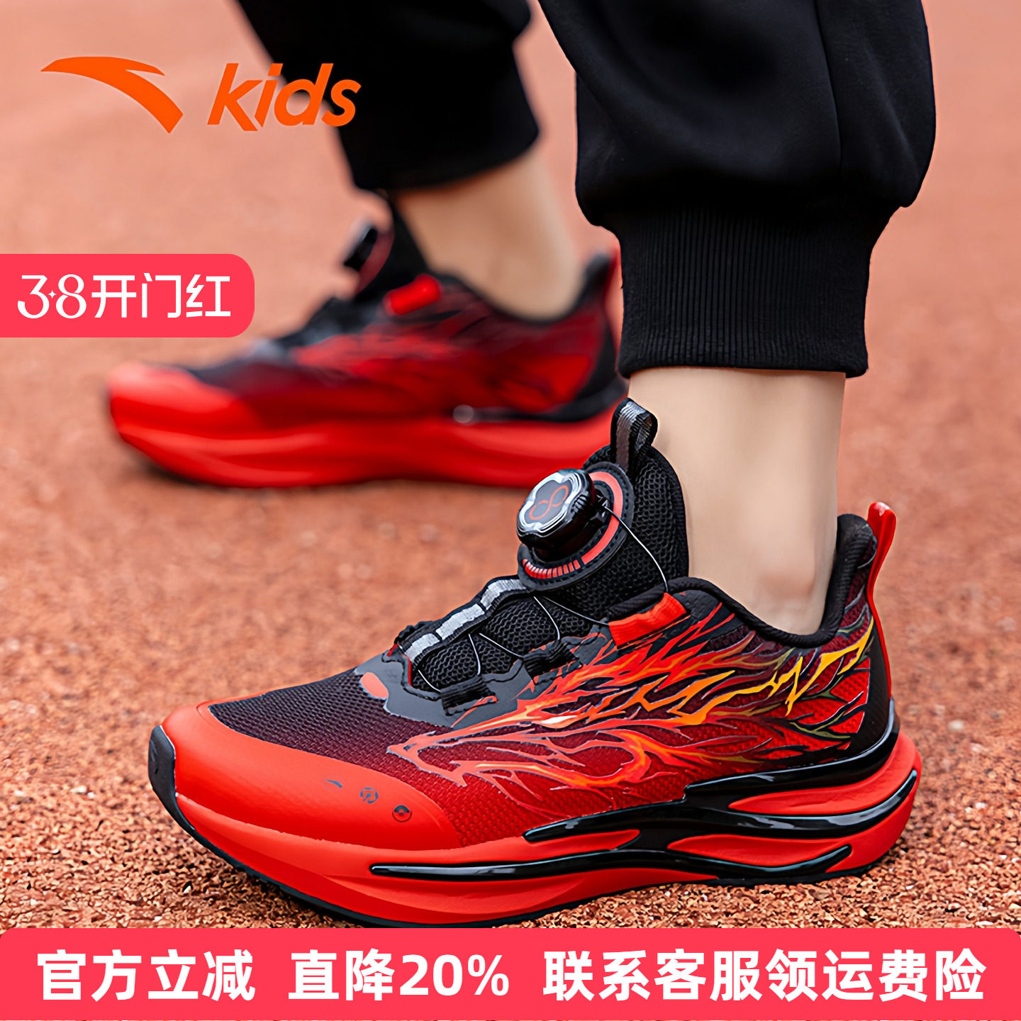 安踏儿童赤焰红色跑鞋新年运动鞋