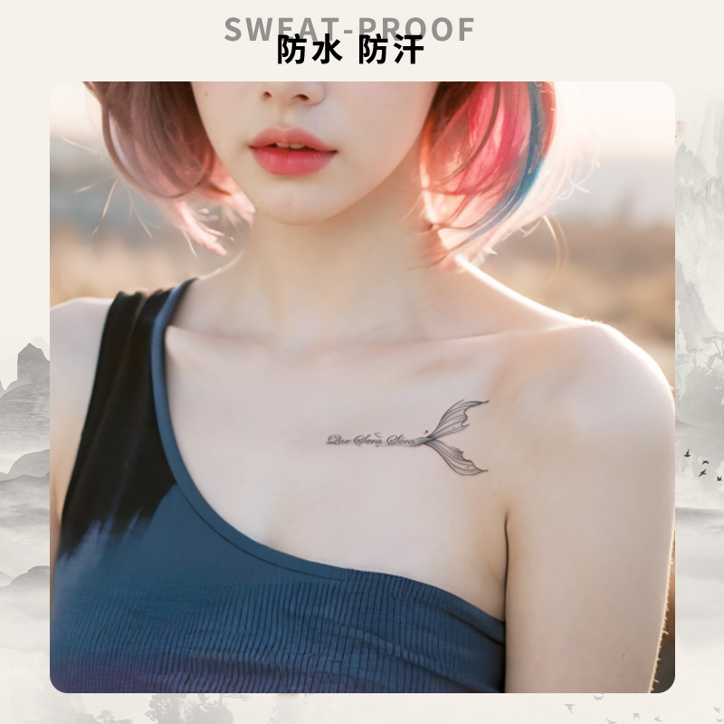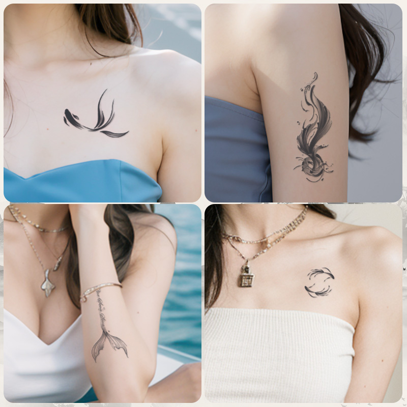 锦鲤纹身贴男女防水持久草本刺青色锁骨肩膀高级感ins风遮盖原创