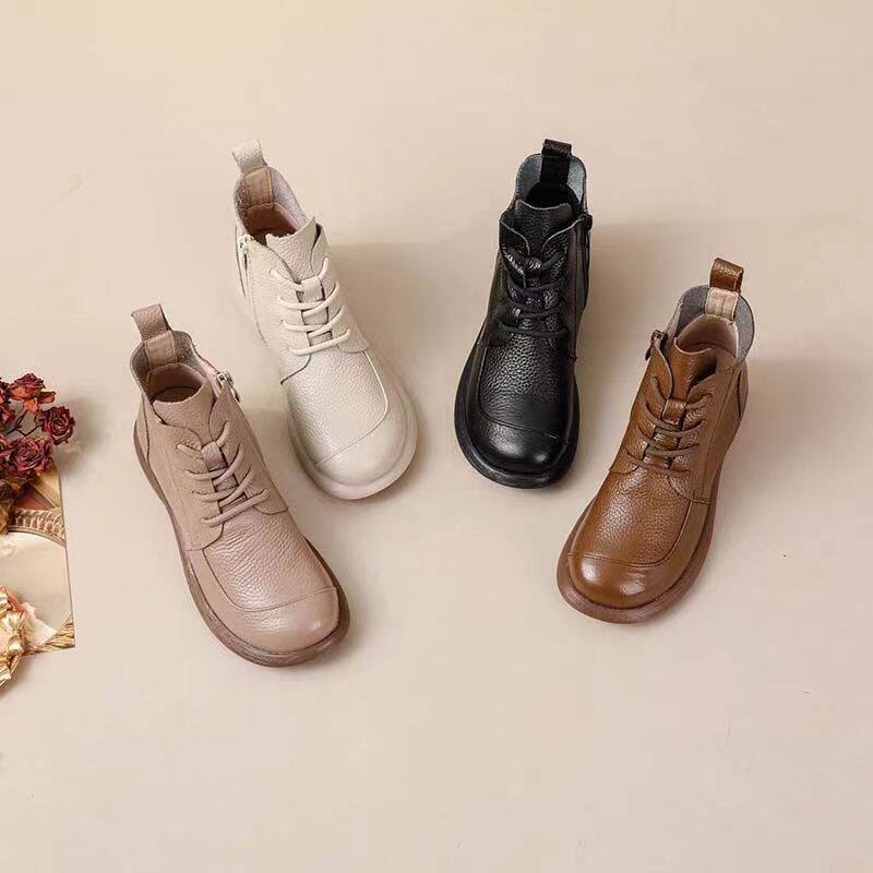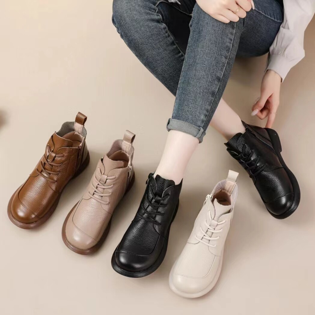 头层牛皮短靴复古百搭马丁靴女
