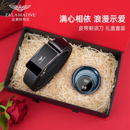 法莱阿玛尼真皮皮带男士腰带电动剃须刀礼盒套装生日礼物送男友