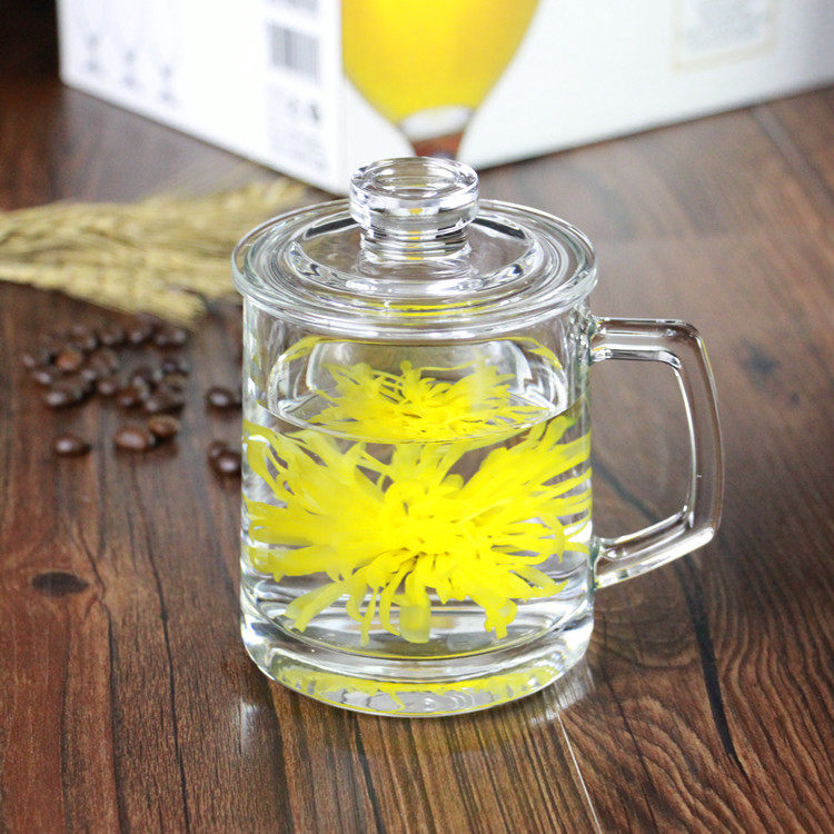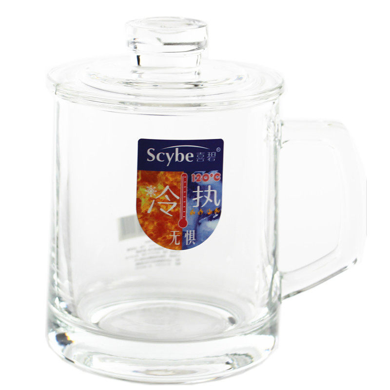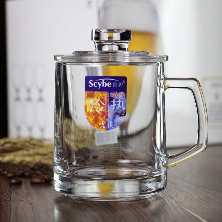带把加厚玻璃杯办公耐热带盖创意家用高温泡茶杯子简约透明喝水杯