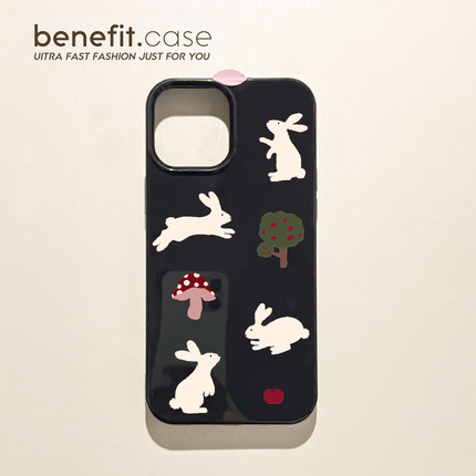benefit韩系兔子与蘑菇17pro16适用iphone15promax苹果13手机壳14promax新款12套11简约xsmax透明xr硅胶8p7p