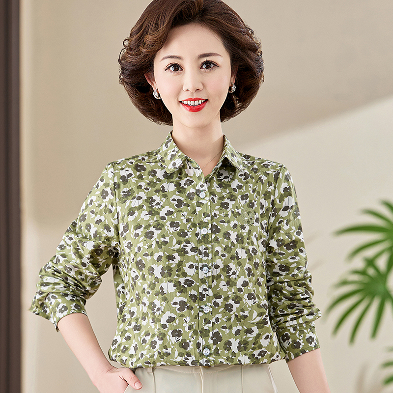 中年妈妈装纯棉长袖碎花衬衫女2025春季新款全棉洋气宽松薄款上衣