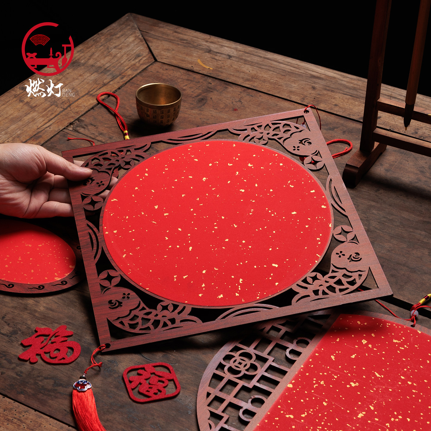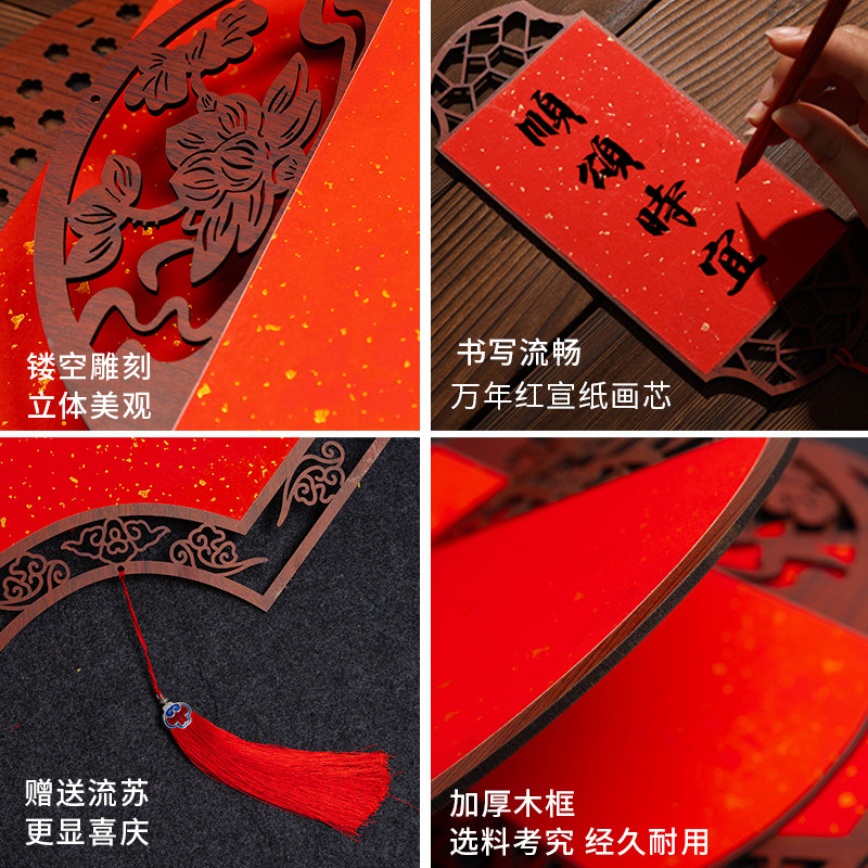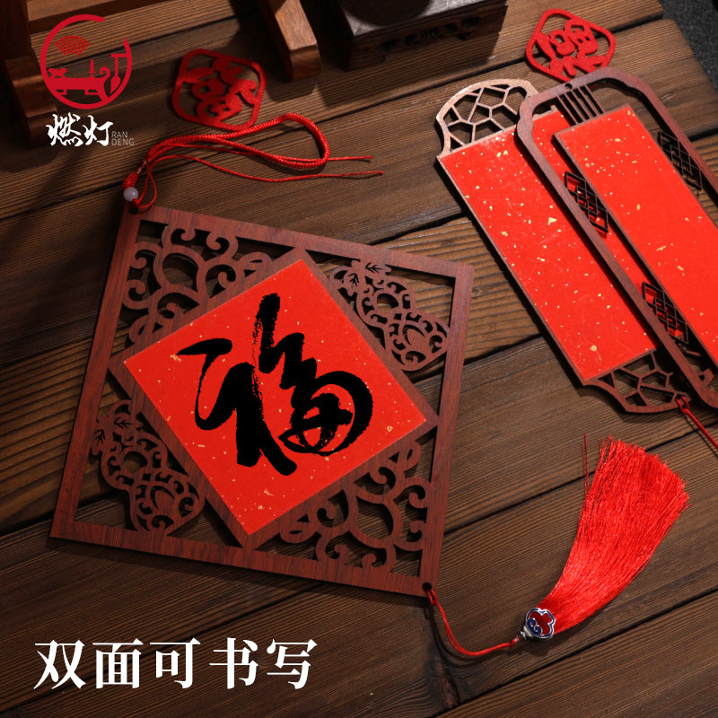 燃灯10个装中国风窗花挂饰木质万年红宣纸福卡挂件新春空白手写斗方福字红纸挂饰书法双面灯笼卡纸2026年新款