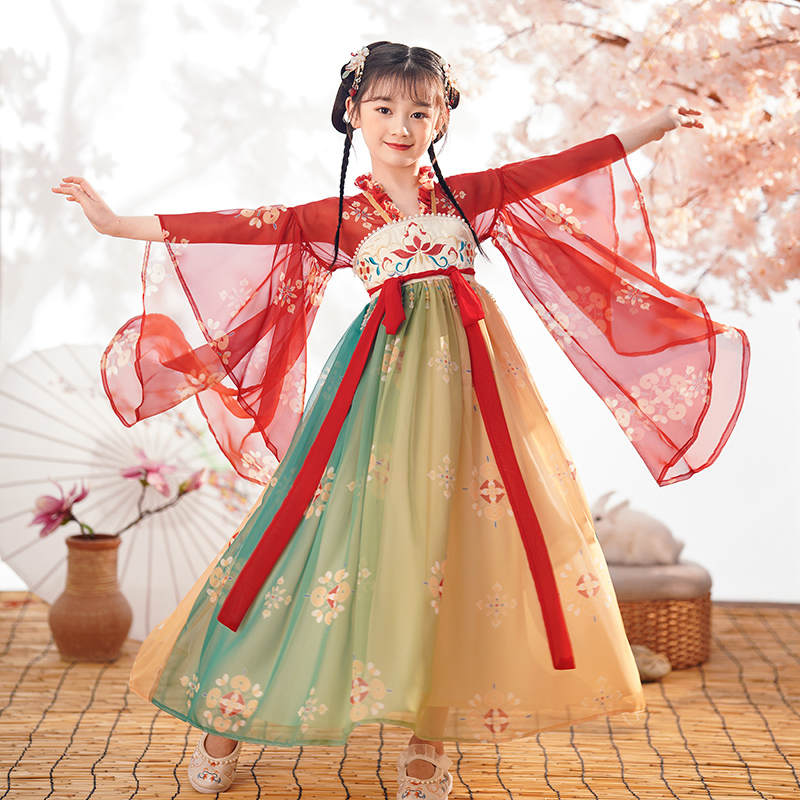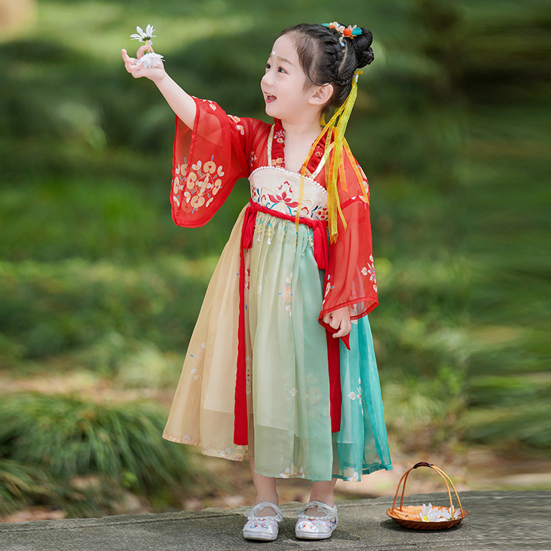 女童汉服夏款小女孩中国风超仙连衣裙儿童国庆古筝汉服演出服襦裙