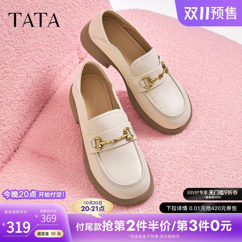 【双11预售】TATA他她小爵士女鞋英伦黑色乐福鞋百搭小真皮鞋单鞋