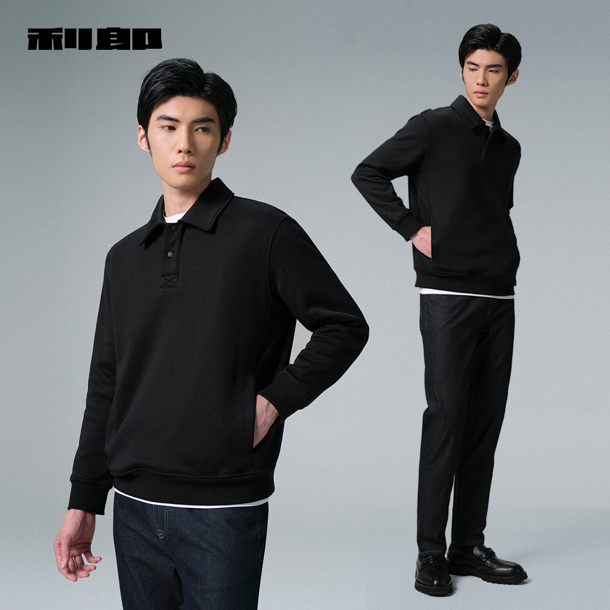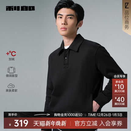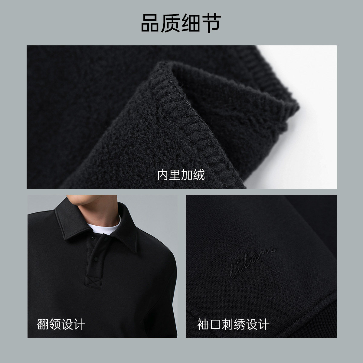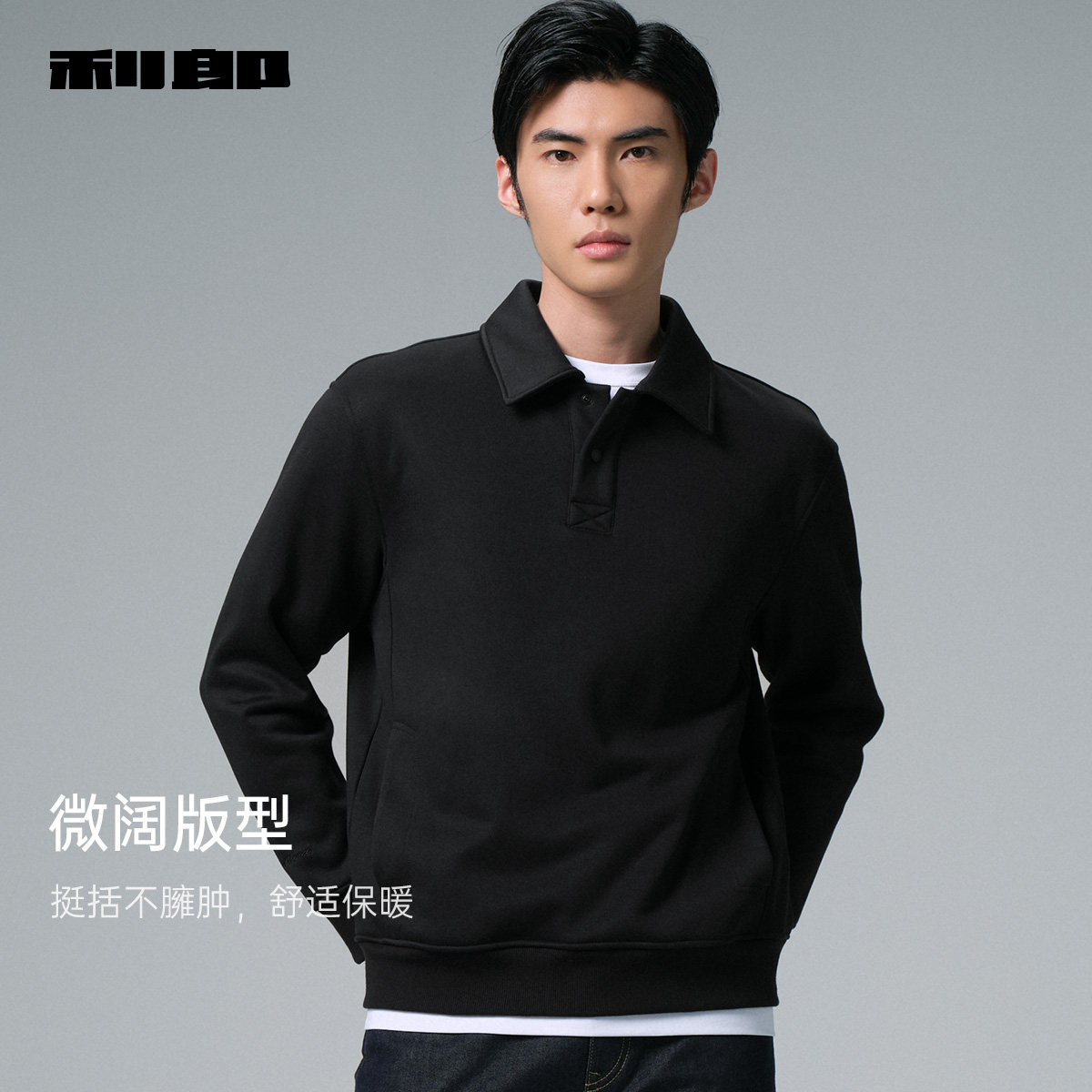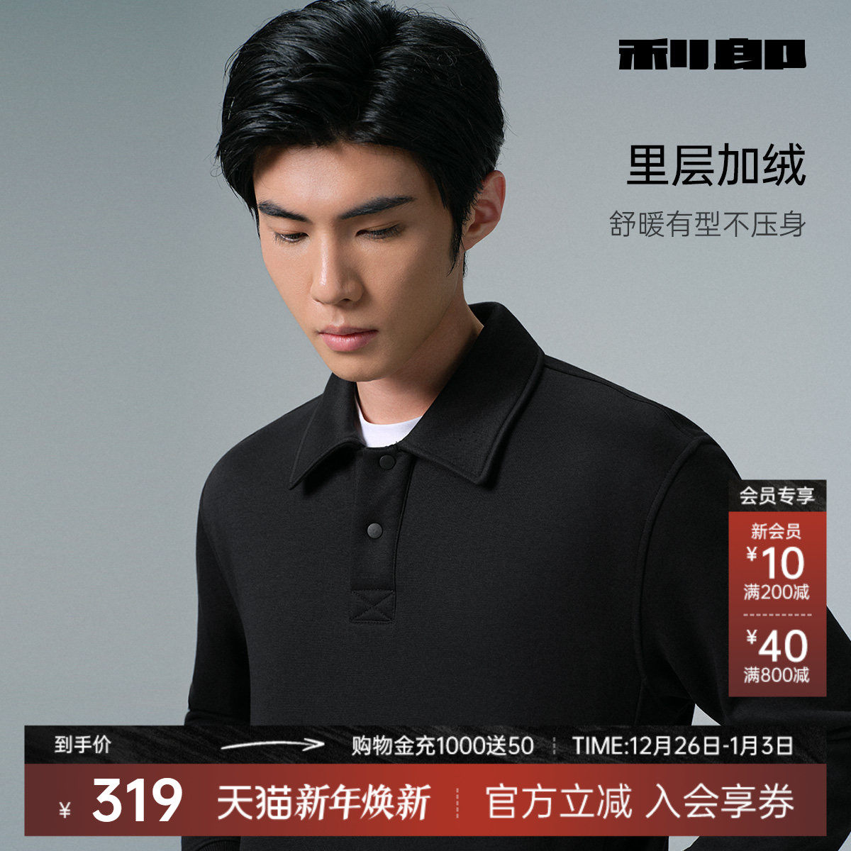 【加绒】利郎官方 长袖卫衣男士微阔宽松翻领2025冬季保暖T恤男装