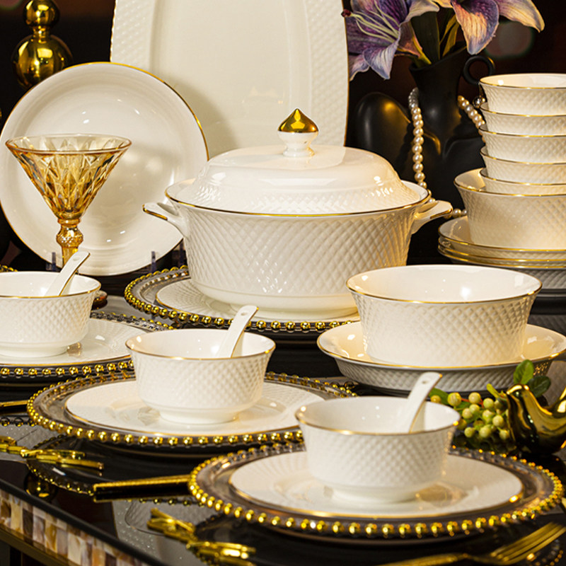轻奢风陶瓷餐具碗盘浮雕钻石