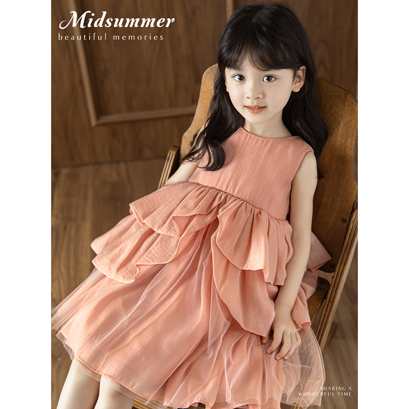 幼悠女童朦胧轻纱浪漫公主裙2025夏季甜蜜可爱大蝴蝶结无袖连衣裙